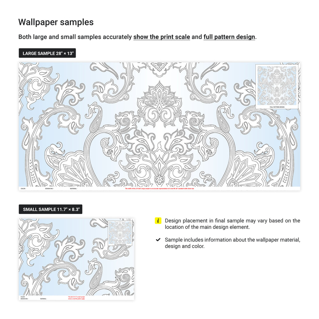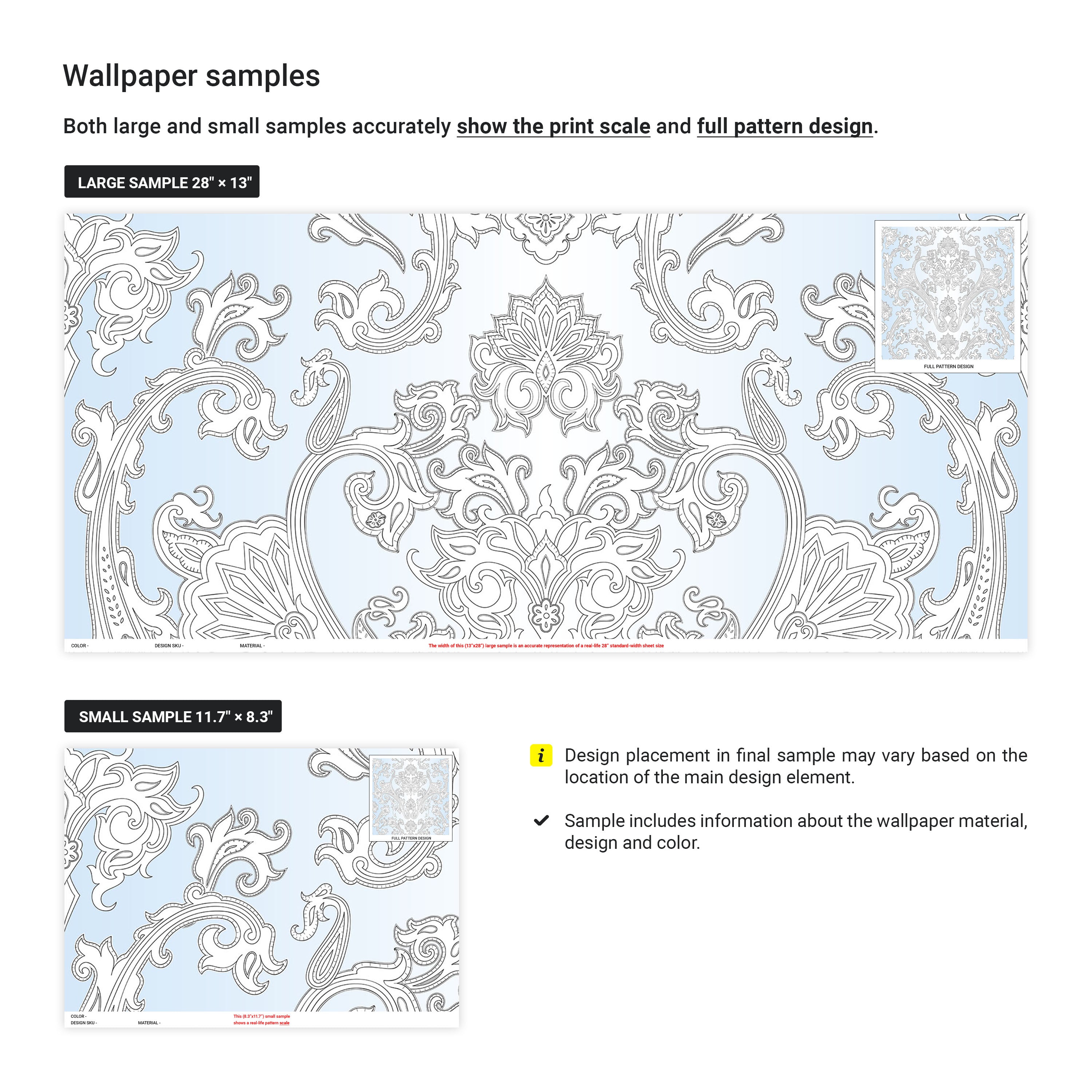 Customize colors of the wallpaper design details or background to match your interior palette. When placing an order, include a note specifying the detail you would like to change.