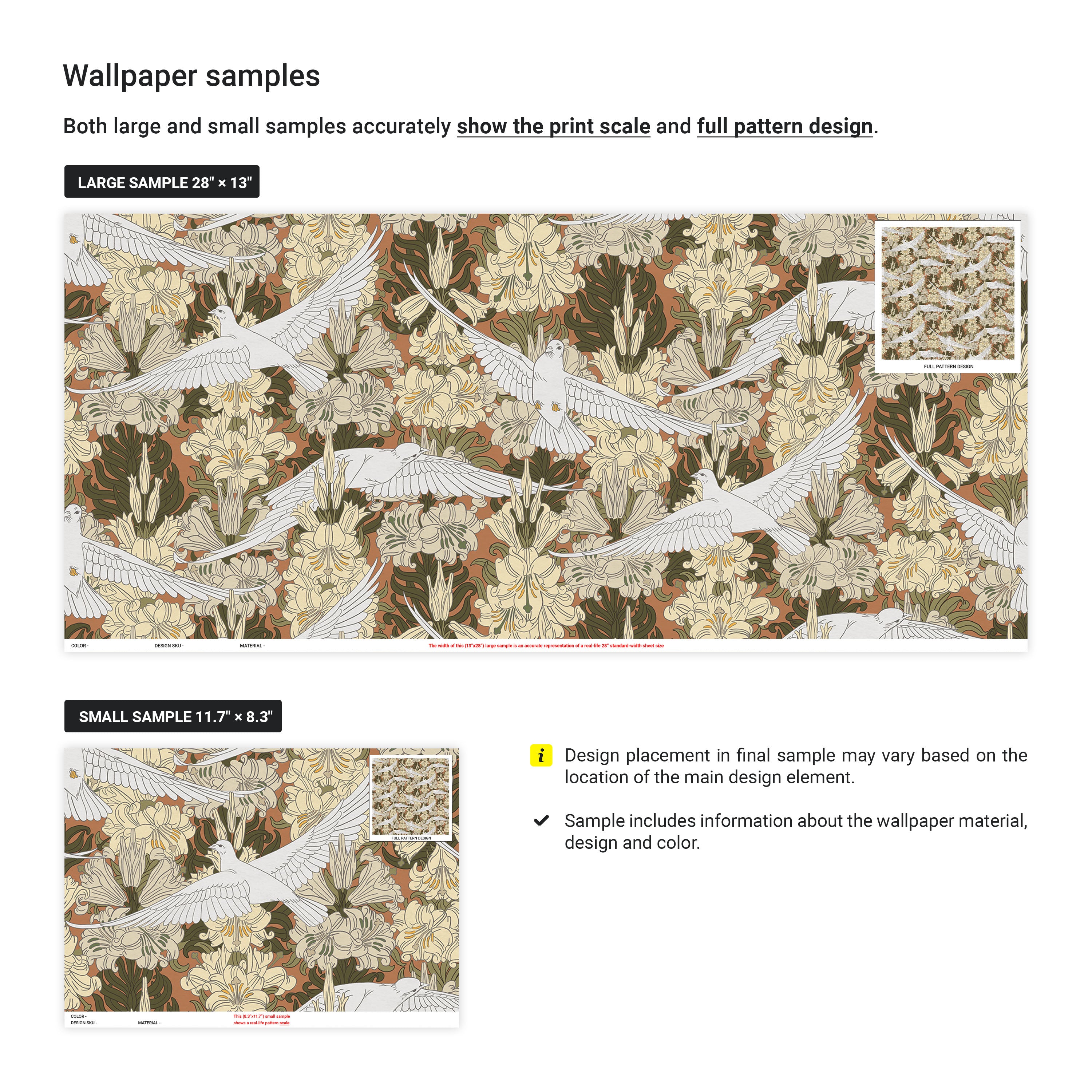 Customize colors of the wallpaper design details or background to match your interior palette. When placing an order, include a note specifying the detail you would like to change.