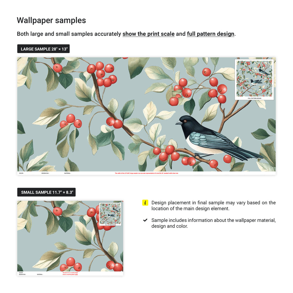 Customize colors of the wallpaper design details or background to match your interior palette. When placing an order, include a note specifying the detail you would like to change.