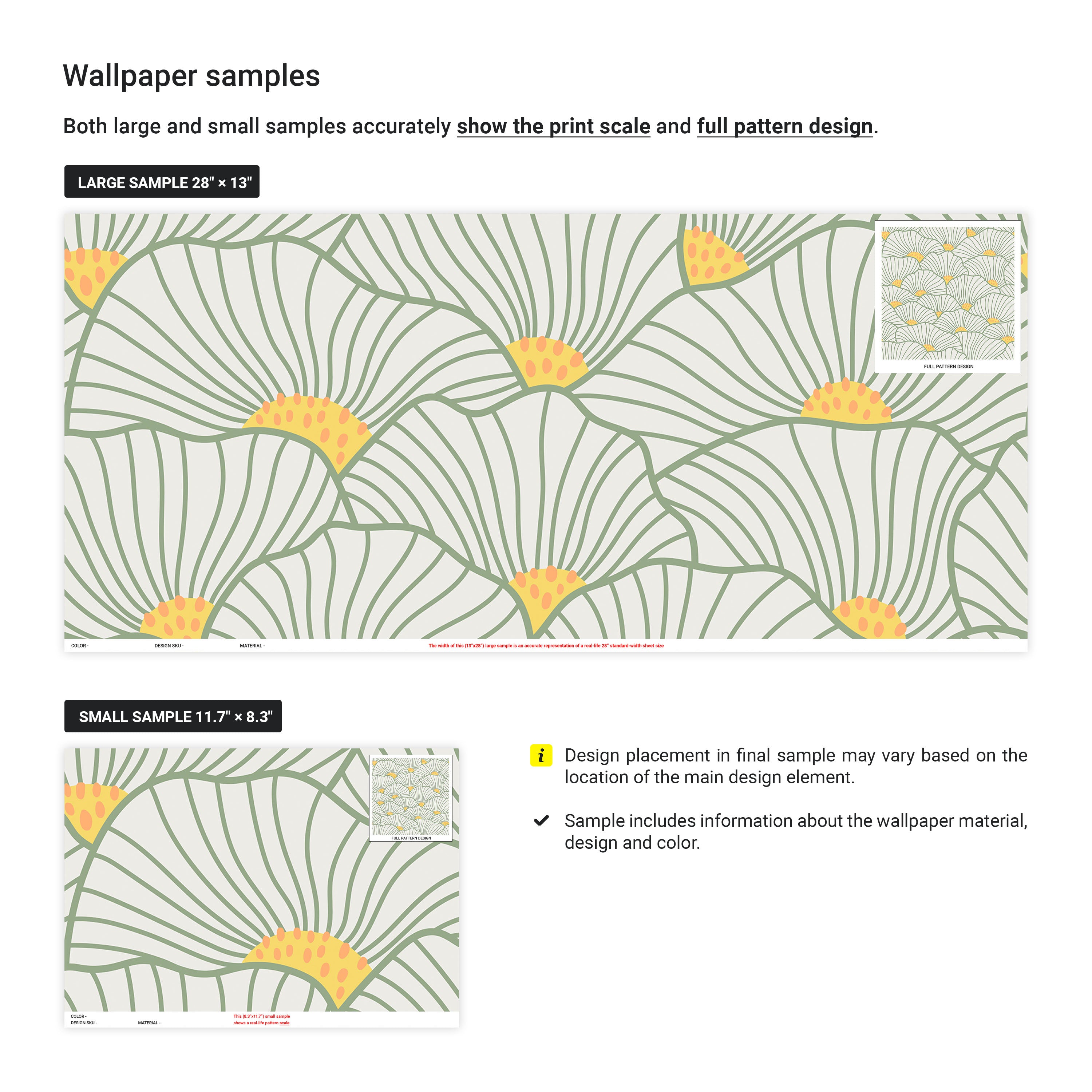 Customize colors of the wallpaper design details or background to match your interior palette. When placing an order, include a note specifying the detail you would like to change.