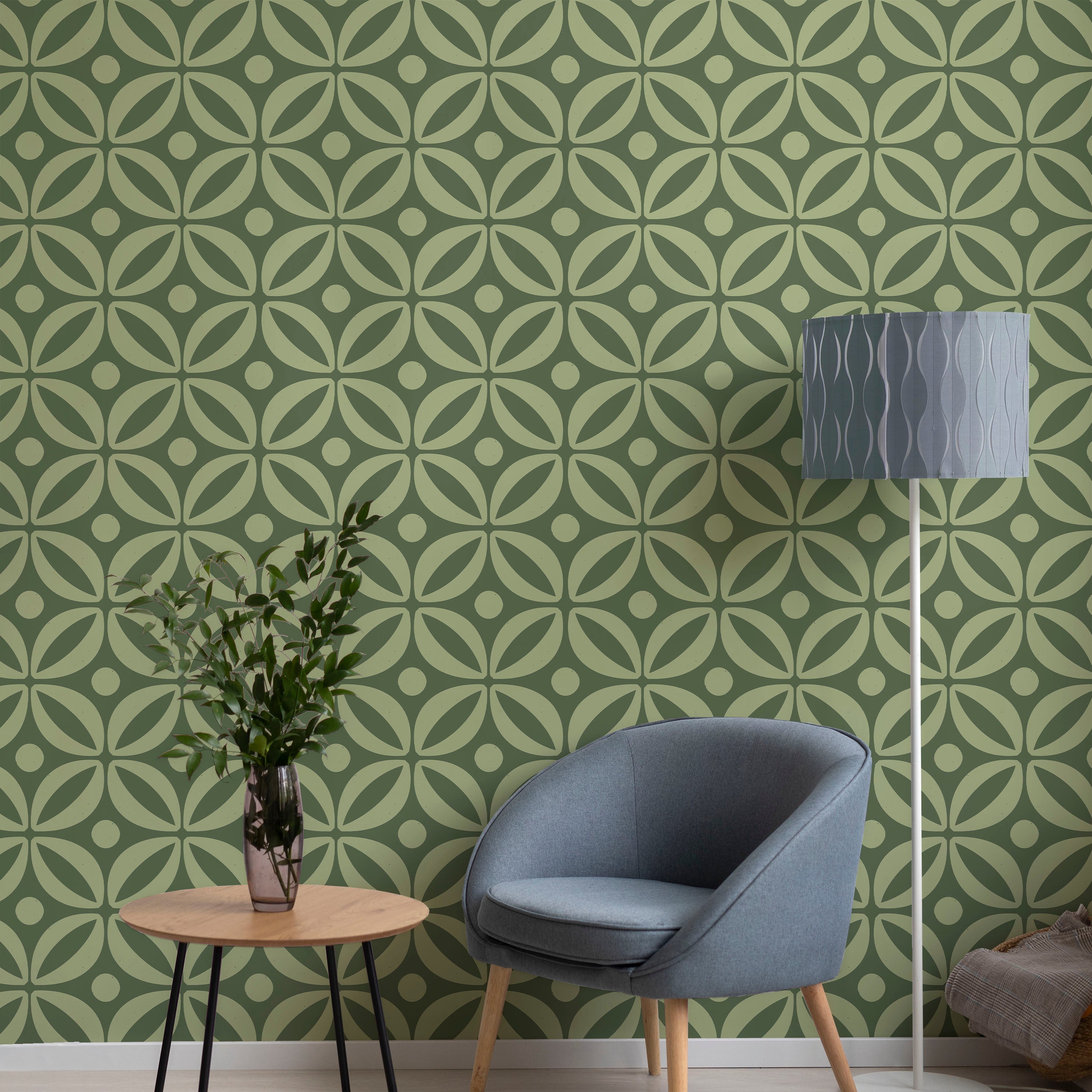 Grid Bloom Wallpaper - Green