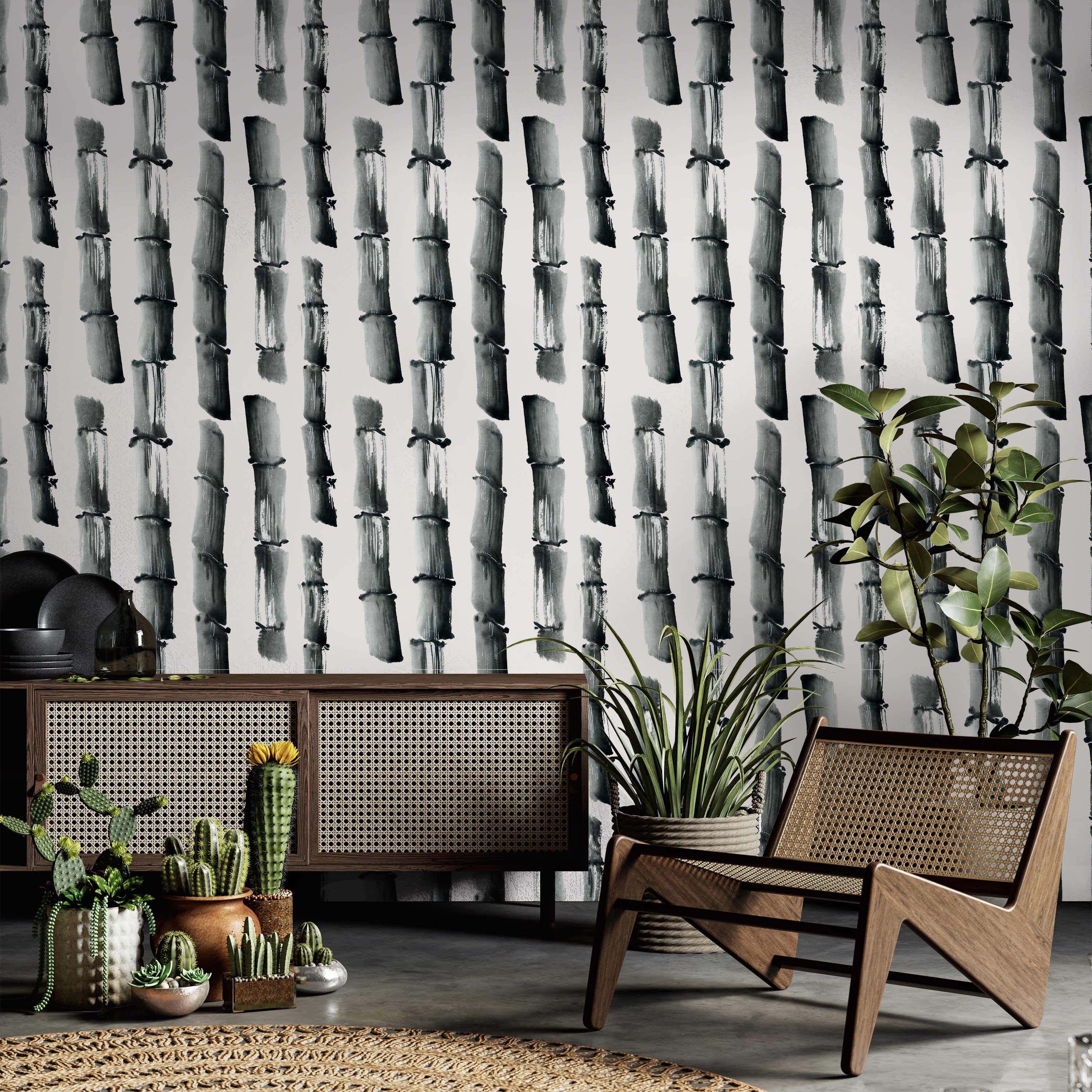 Striking monochromatic brushstroke design capturing the essence of traditional ink painting. This wallpaper delivers visual sophistication through its organic, gestural marks, ideal for discerning interiors seeking refined artistic character and understated luxury.