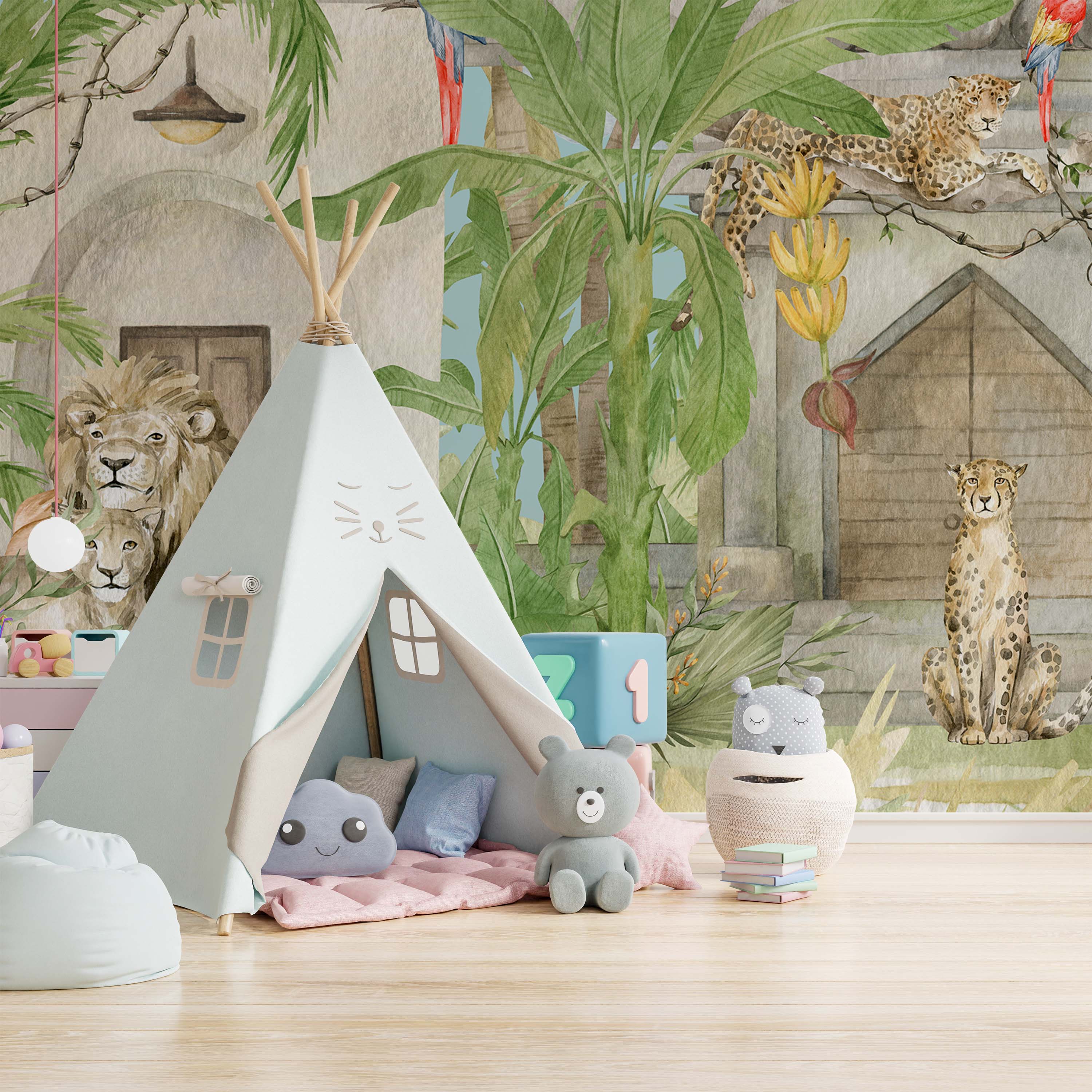 Elevate your interior with this expertly crafted safari wall mural, showcasing meticulously rendered jungle fauna and flora. The composition balances visual depth with authentic wildlife imagery, delivering sophisticated ambiance. Ideal for creating focal points in residential or commercial spaces with professional-grade aesthetic appeal.
