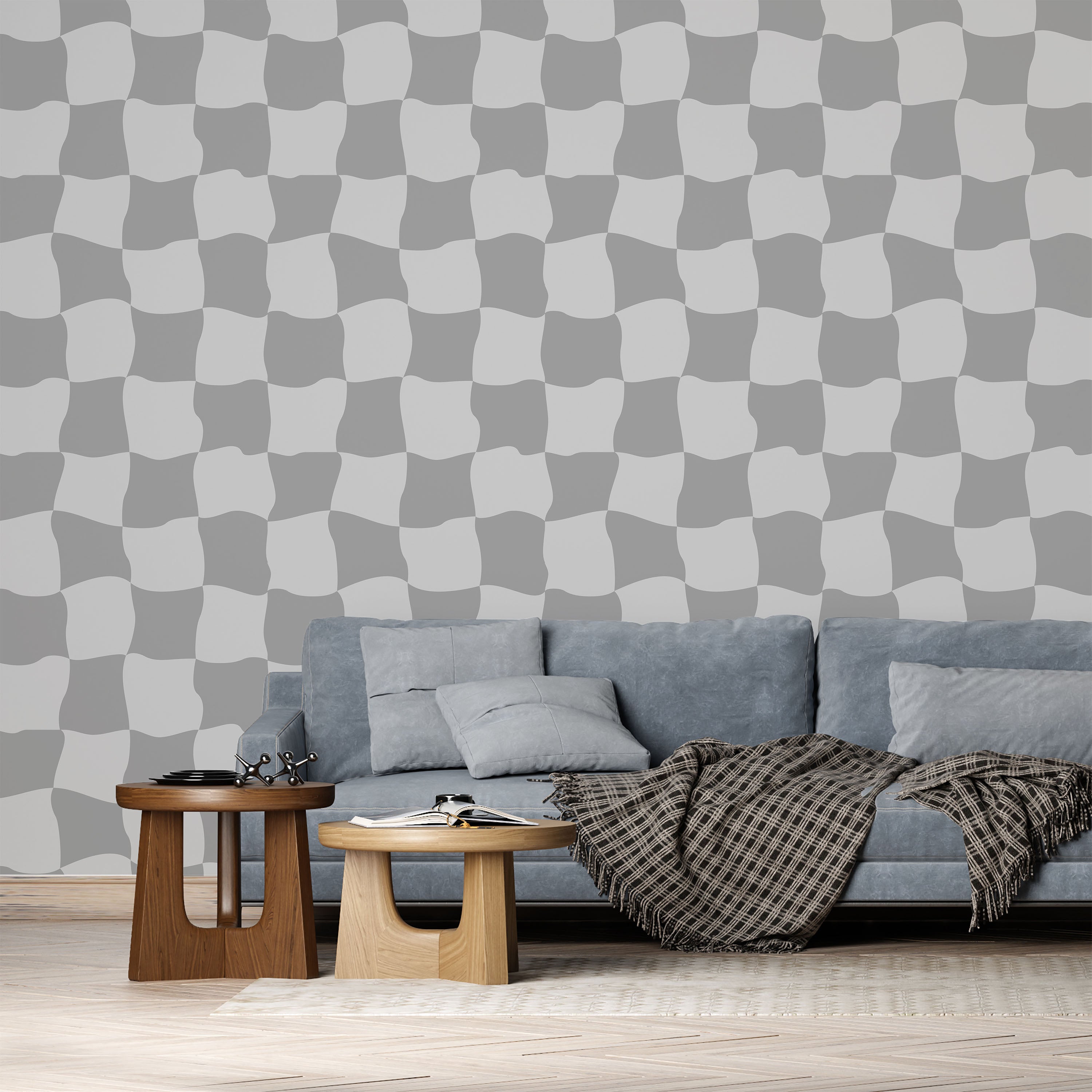 Wavy Squares Wallpaper - Gray