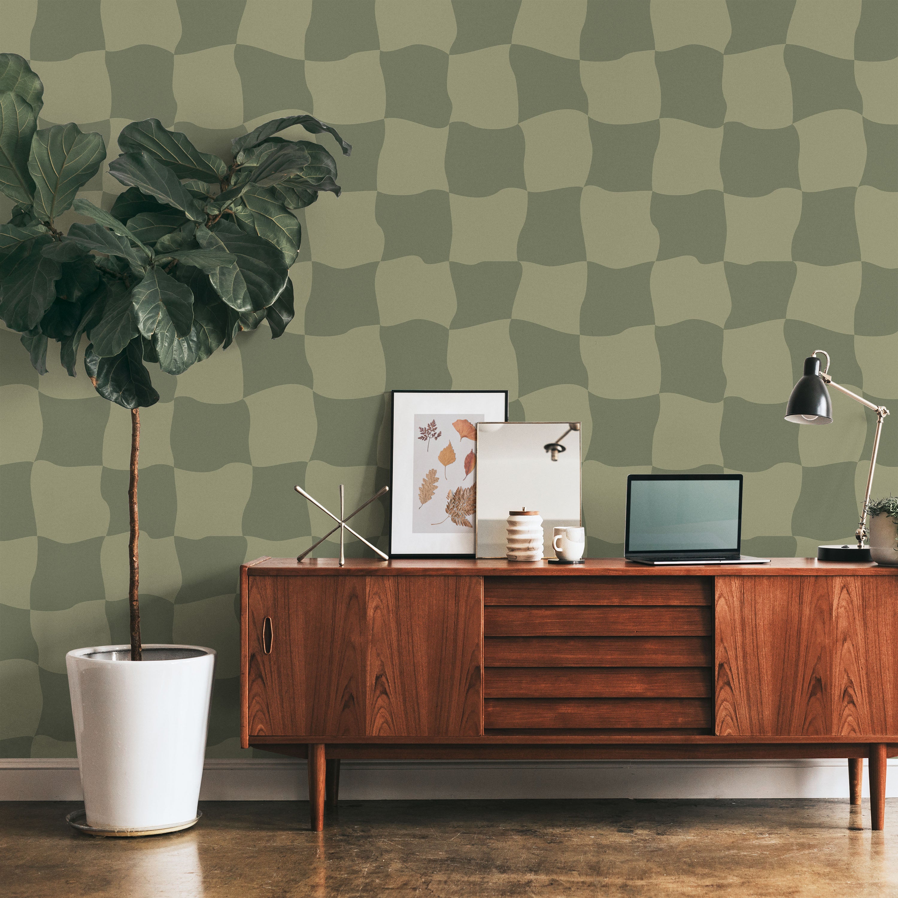 Wavy Squares Wallpaper - Green