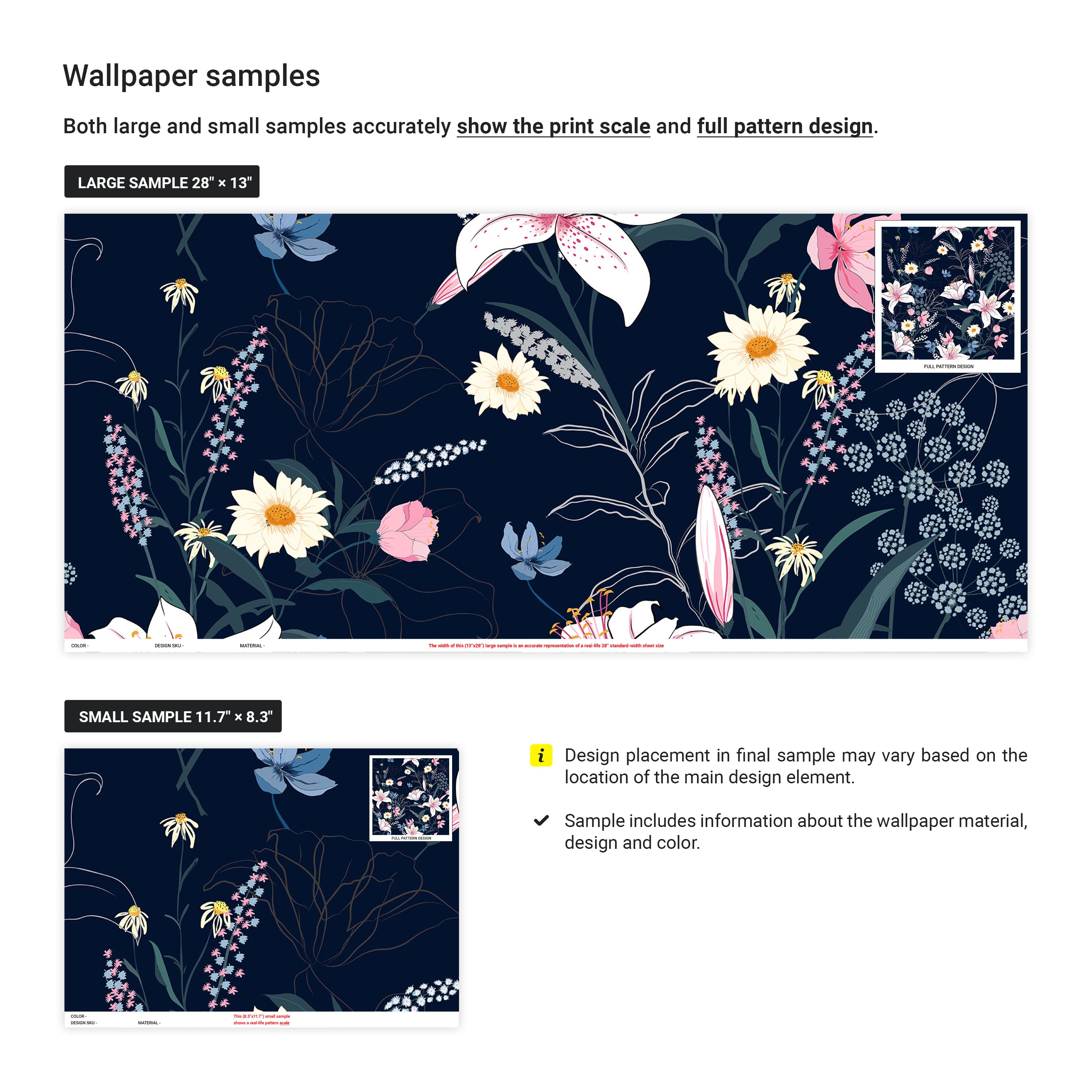 Customize colors of the wallpaper design details or background to match your interior palette. When placing an order, include a note specifying the detail you would like to change.