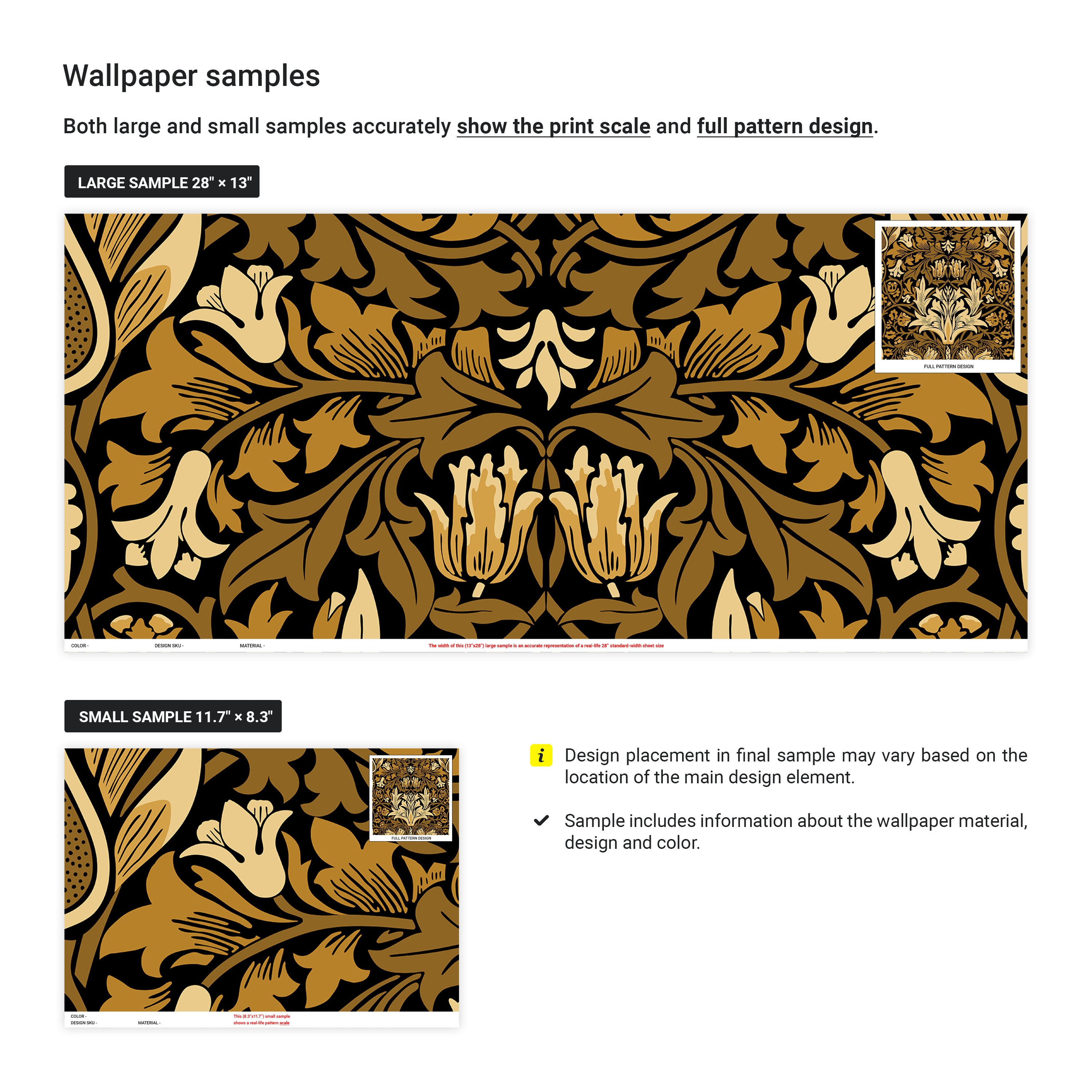 Customize colors of the wallpaper design details or background to match your interior palette. When placing an order, include a note specifying the detail you would like to change.