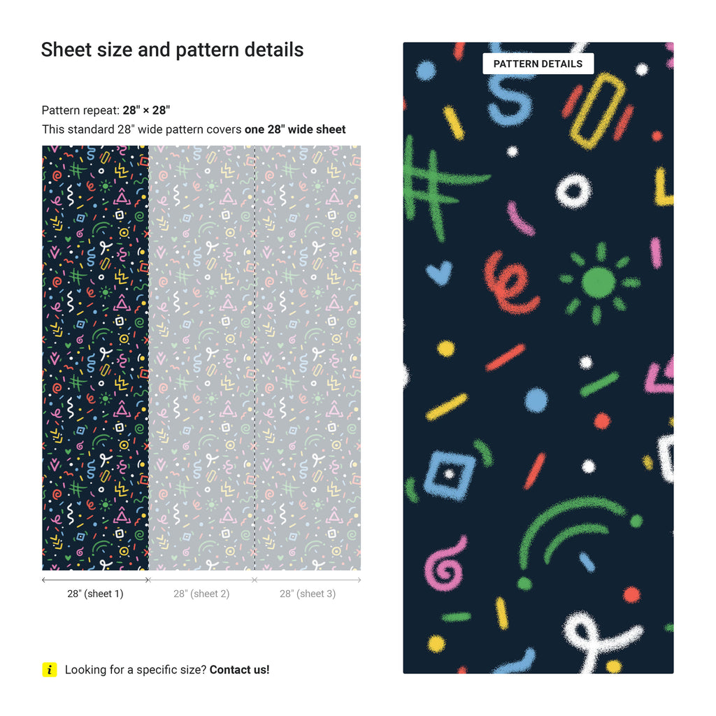 Chalk Doodles Wallpaper - Navy Blue