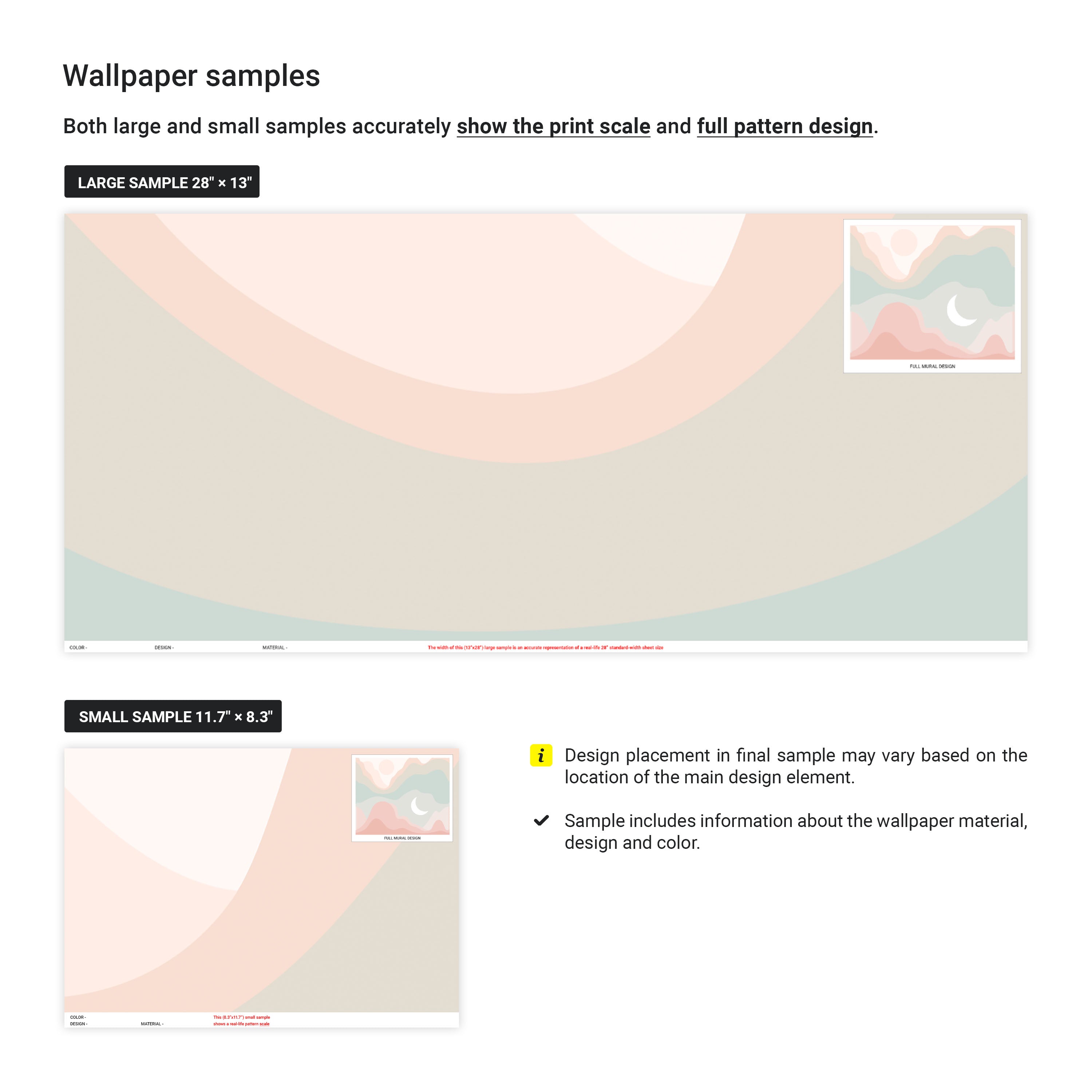 Customize colors of the wallpaper design details or background to match your interior palette. When placing an order, include a note specifying the detail you would like to change.