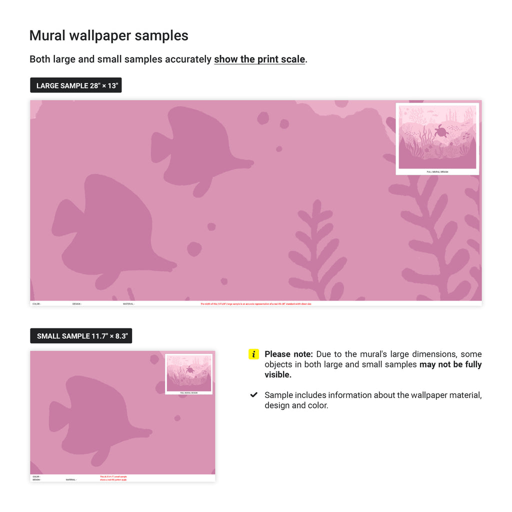 Ocean Bottom Mural Wallpaper - Berry Pink