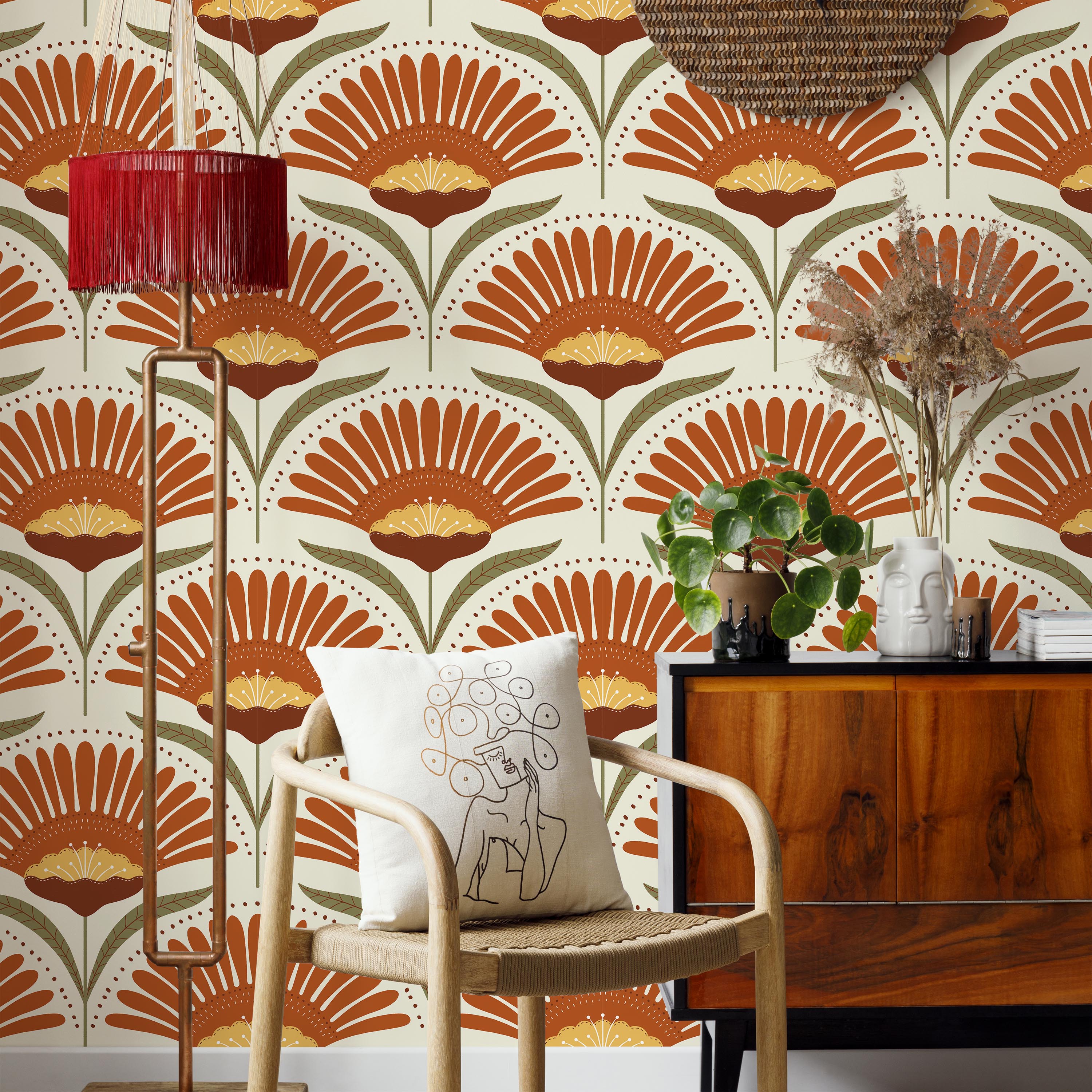Bohemian Blossom Wallpaper - Orange