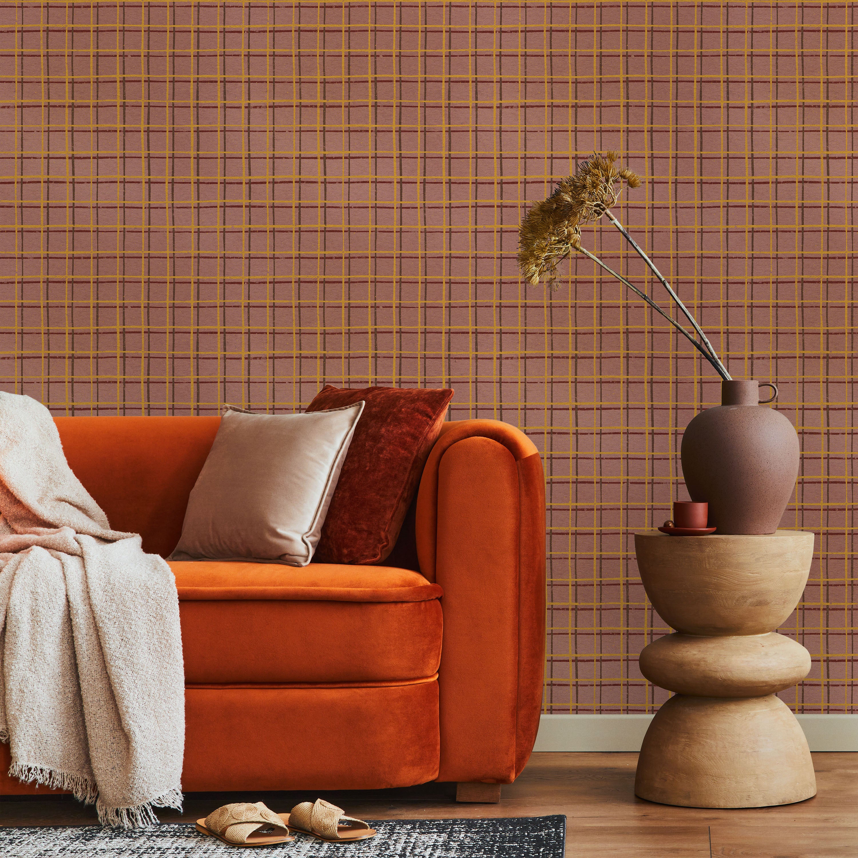 Furuya Korin x Korin Zen Grid Wallpaper - Soft Peach