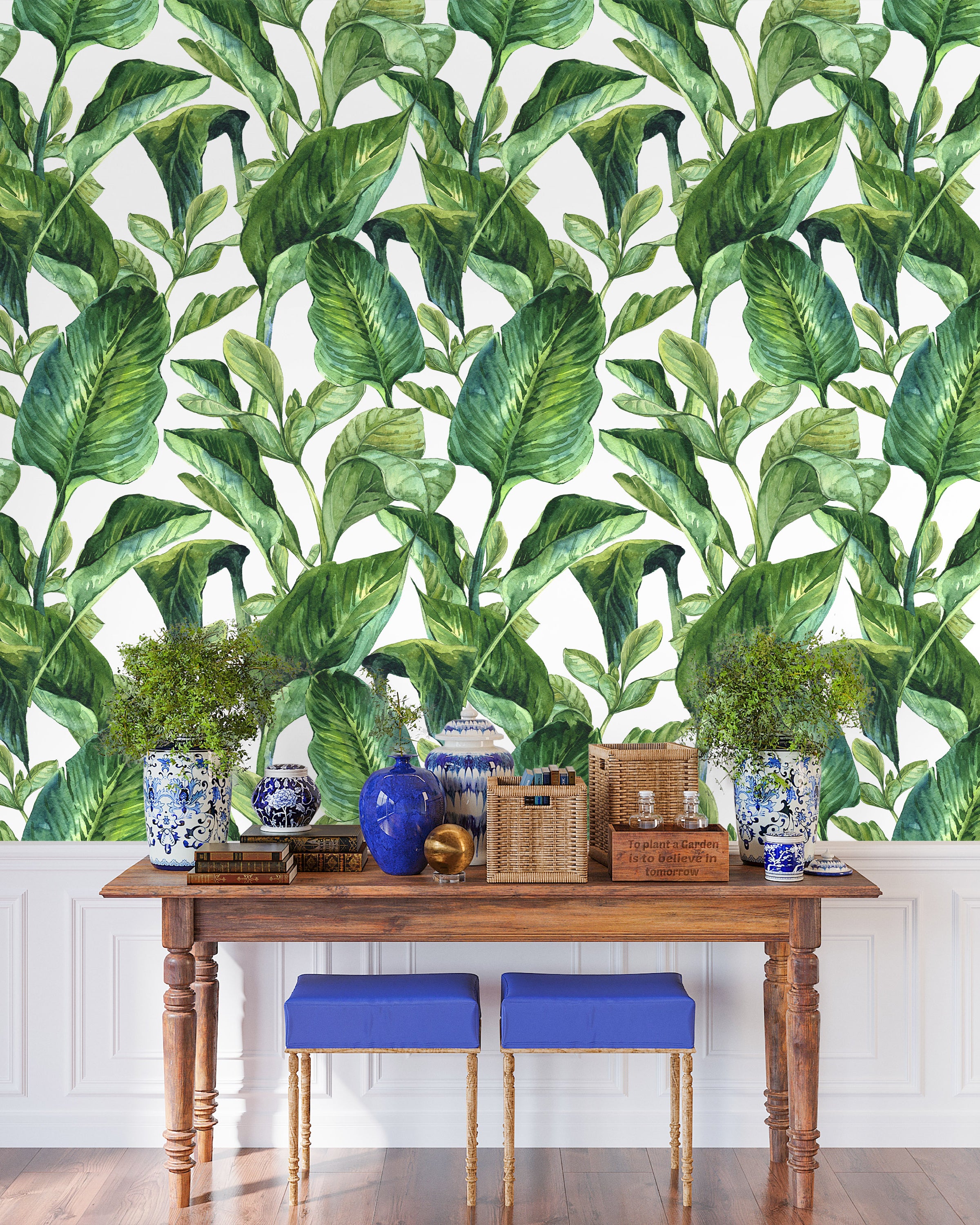 Dark leaves, light leaves. Green leaves, colored leaves. Bohemian-style rooms without greenery – impossible! Make your room calm and airy by choosing our wallpapers! You don’t even need flowers in pots, since they can be on your walls! Only you will have to help them a bit - just peel and stick!