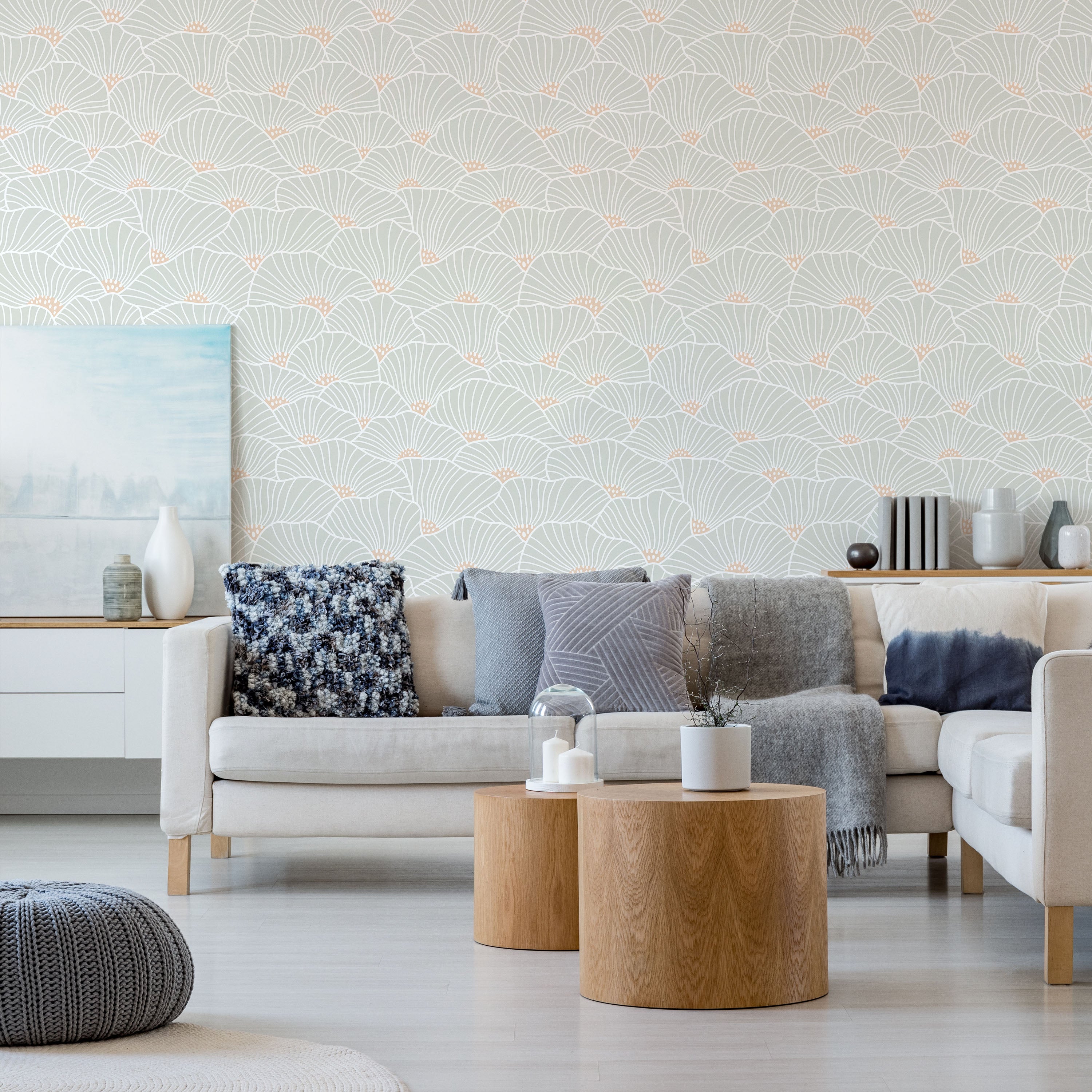 Contemporary wallpaper showcasing intricate geometric florals against a soft light gray backdrop. This design balances modern aesthetics with timeless appeal, ideal for elevating interior spaces with understated elegance and visual depth.