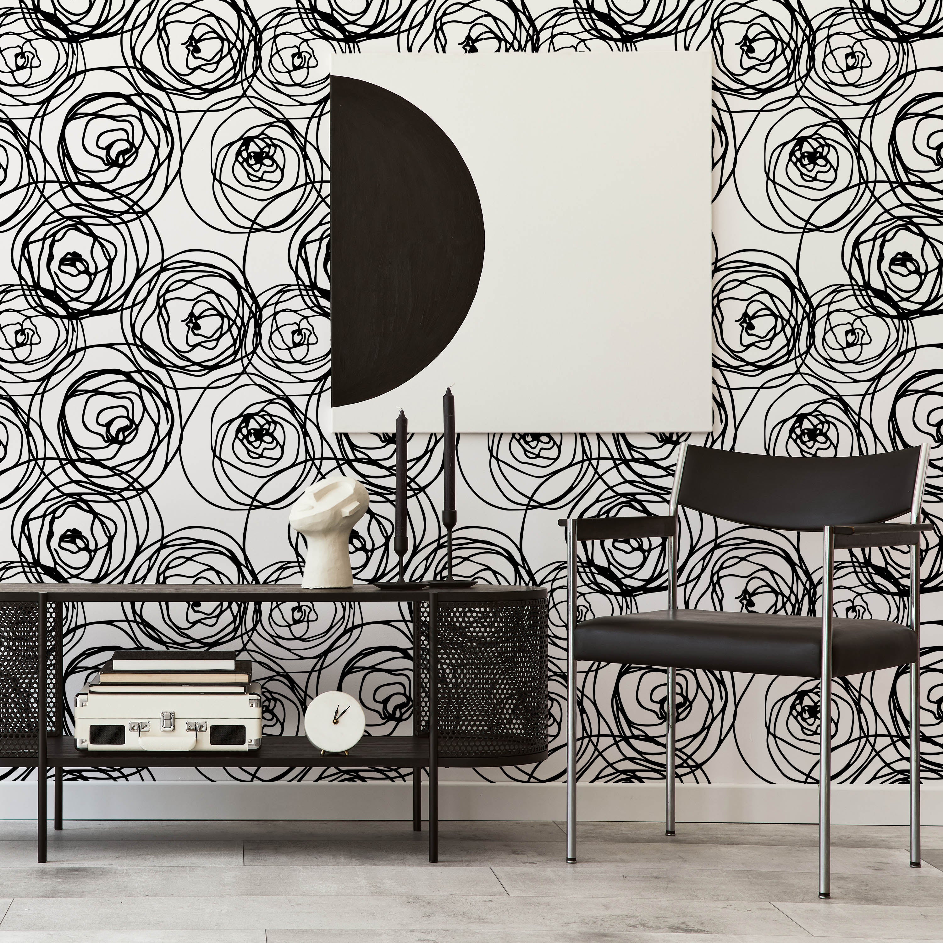 Elegant black line art roses rendered on pristine white background. This sophisticated wallpaper design brings refined botanical aesthetics to any space, combining minimalist linework with timeless floral motifs for a contemporary yet classic appeal.