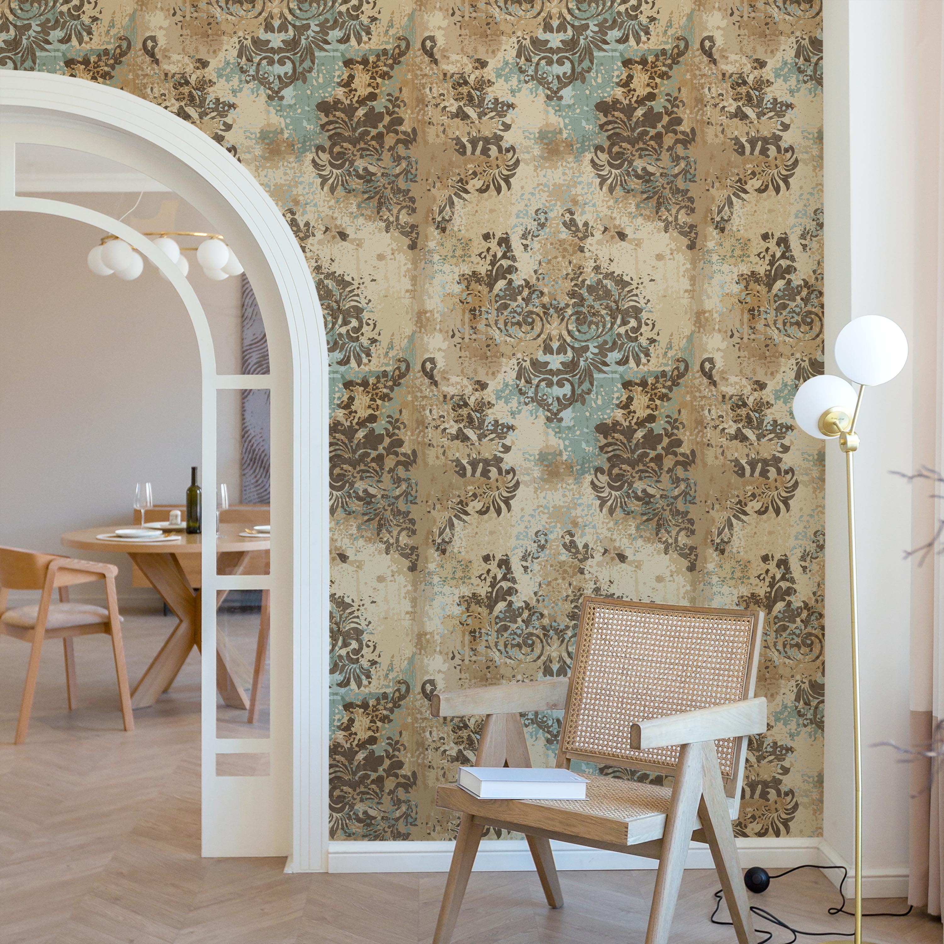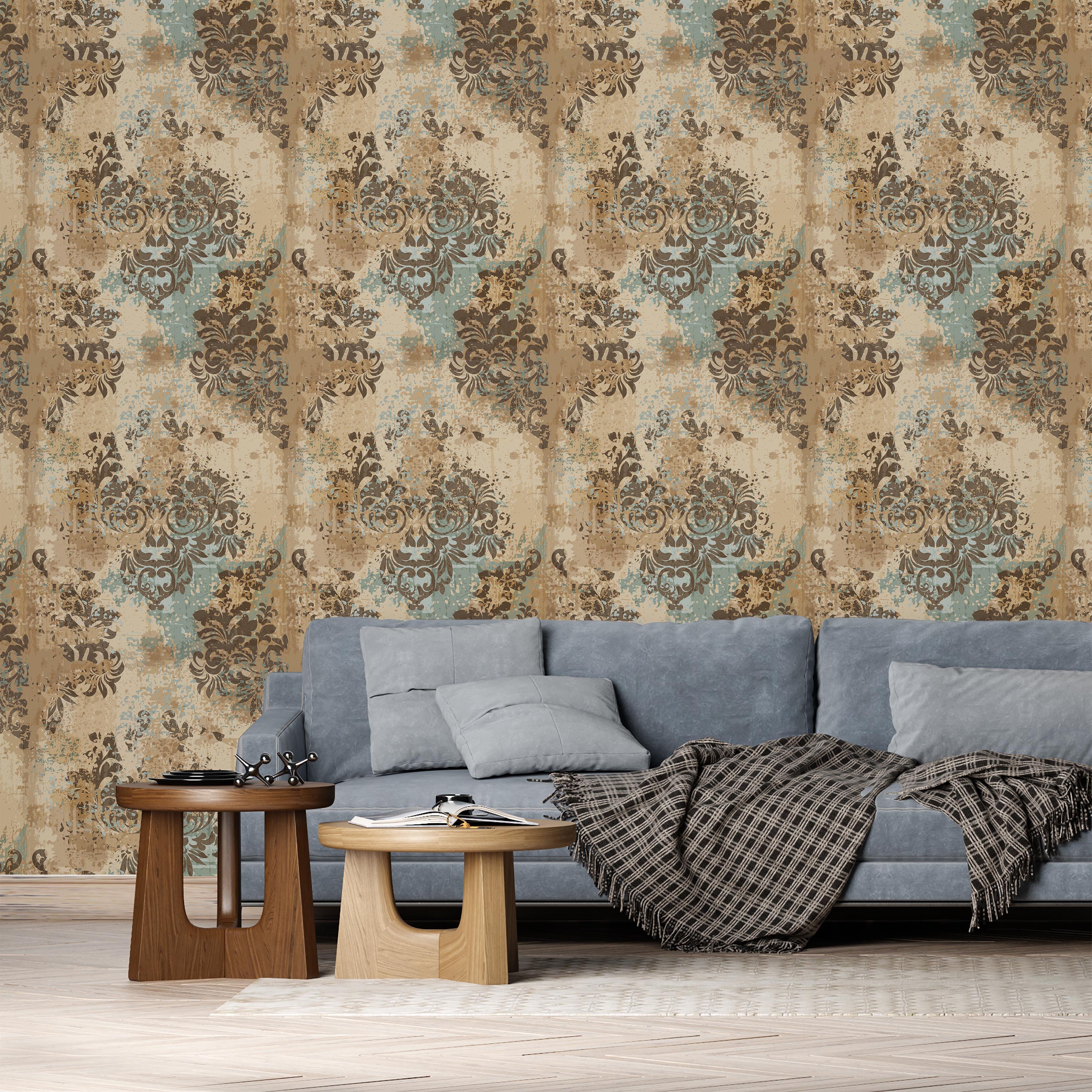 Timeless floral wallpaper featuring sophisticated brown and blue hues. This vintage-inspired design brings classic elegance to any room, offering authentic period charm with modern durability. Perfect for creating refined, curated interiors.