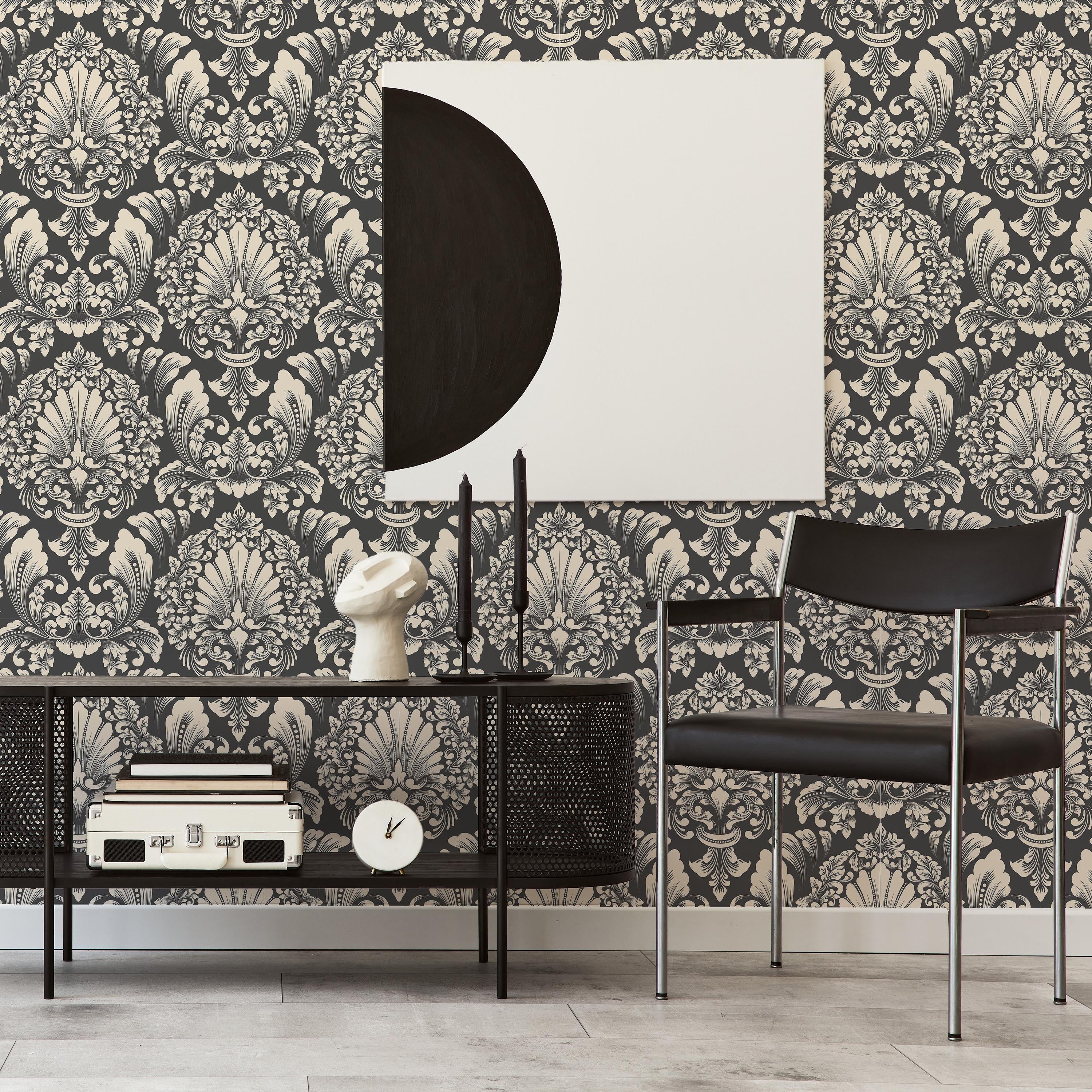 Royal Victorian Wallpaper features an intricate floral and foliate pattern set against a rich dark background. This sophisticated design brings timeless elegance to any room, perfect for creating a refined, gallery-like atmosphere with classic botanical motifs.