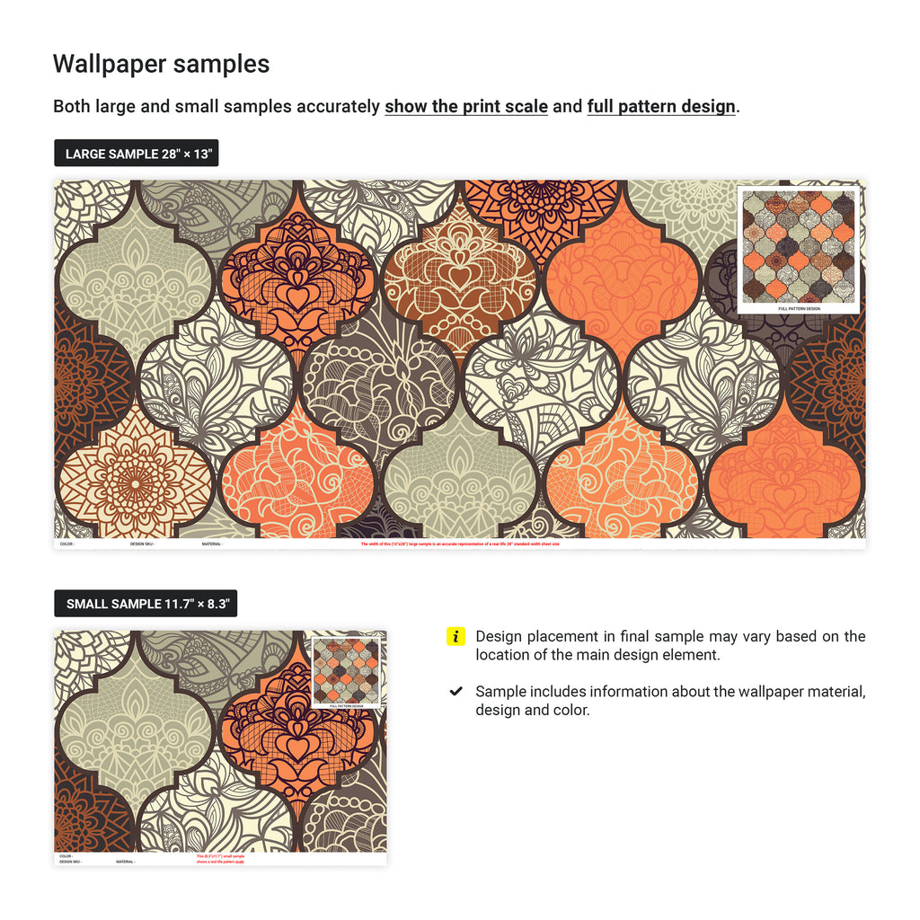 Customize colors of the wallpaper design details or background to match your interior palette. When placing an order, include a note specifying the detail you would like to change.