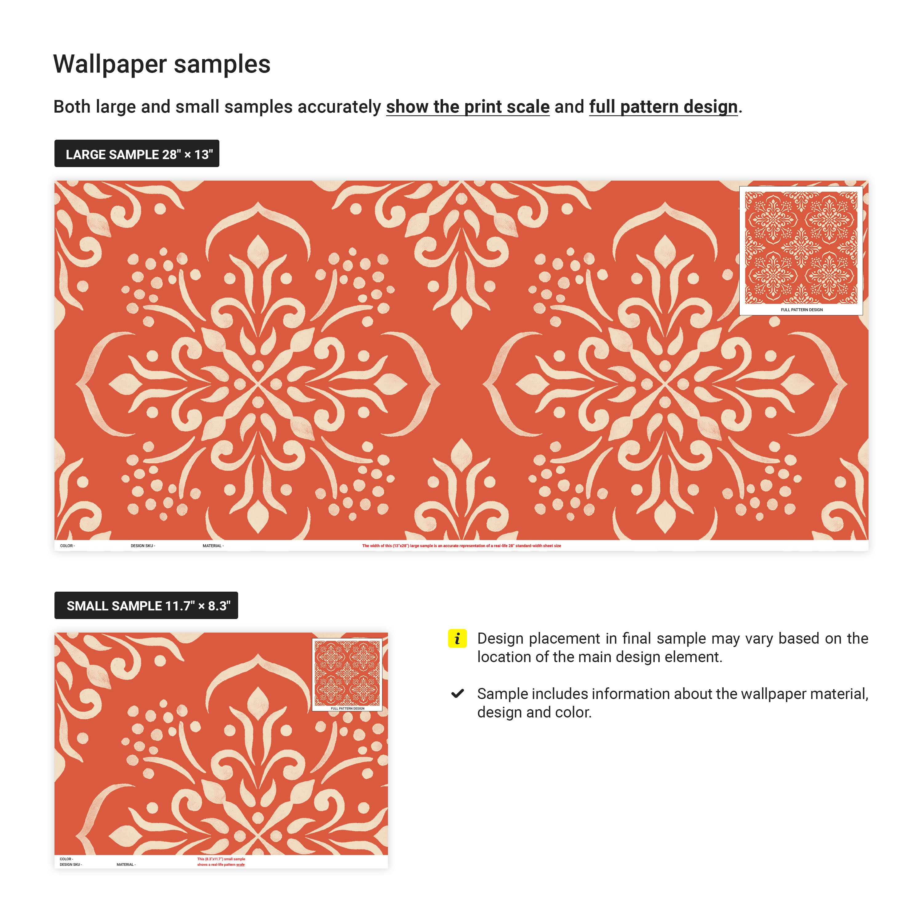 Customize colors of the wallpaper design details or background to match your interior palette. When placing an order, include a note specifying the detail you would like to change.
