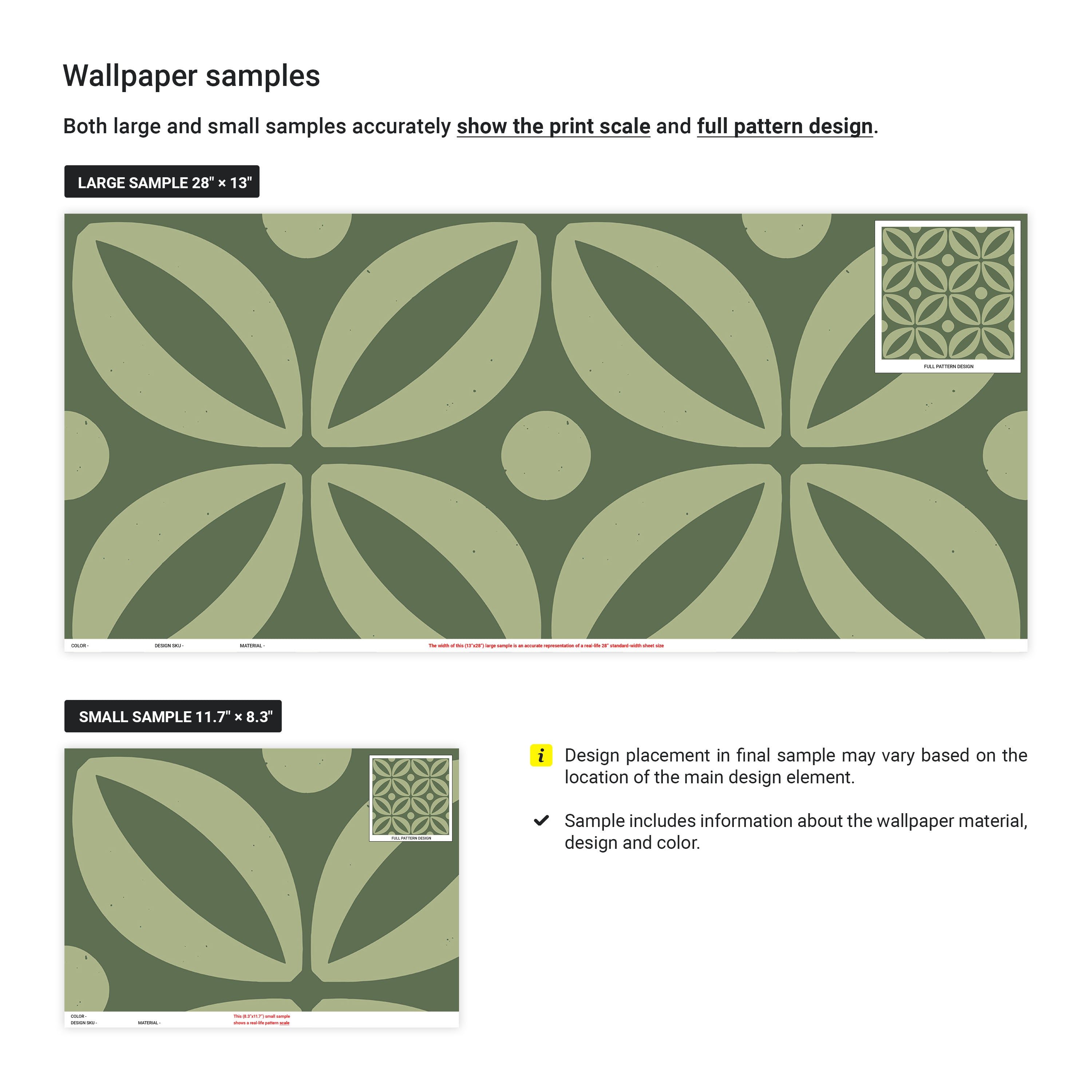 Customize colors of the wallpaper design details or background to match your interior palette. When placing an order, include a note specifying the detail you would like to change.