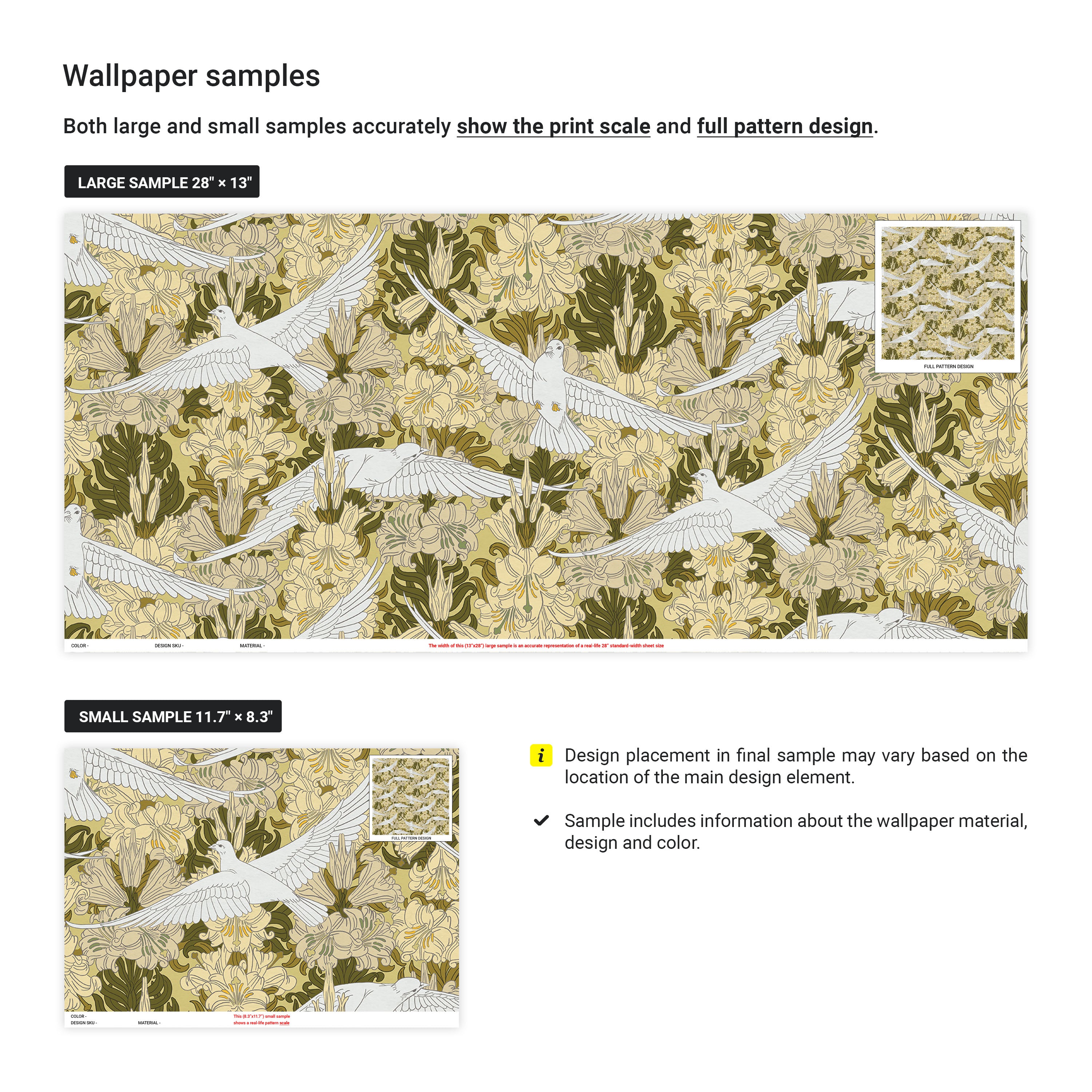 Customize colors of the wallpaper design details or background to match your interior palette. When placing an order, include a note specifying the detail you would like to change.