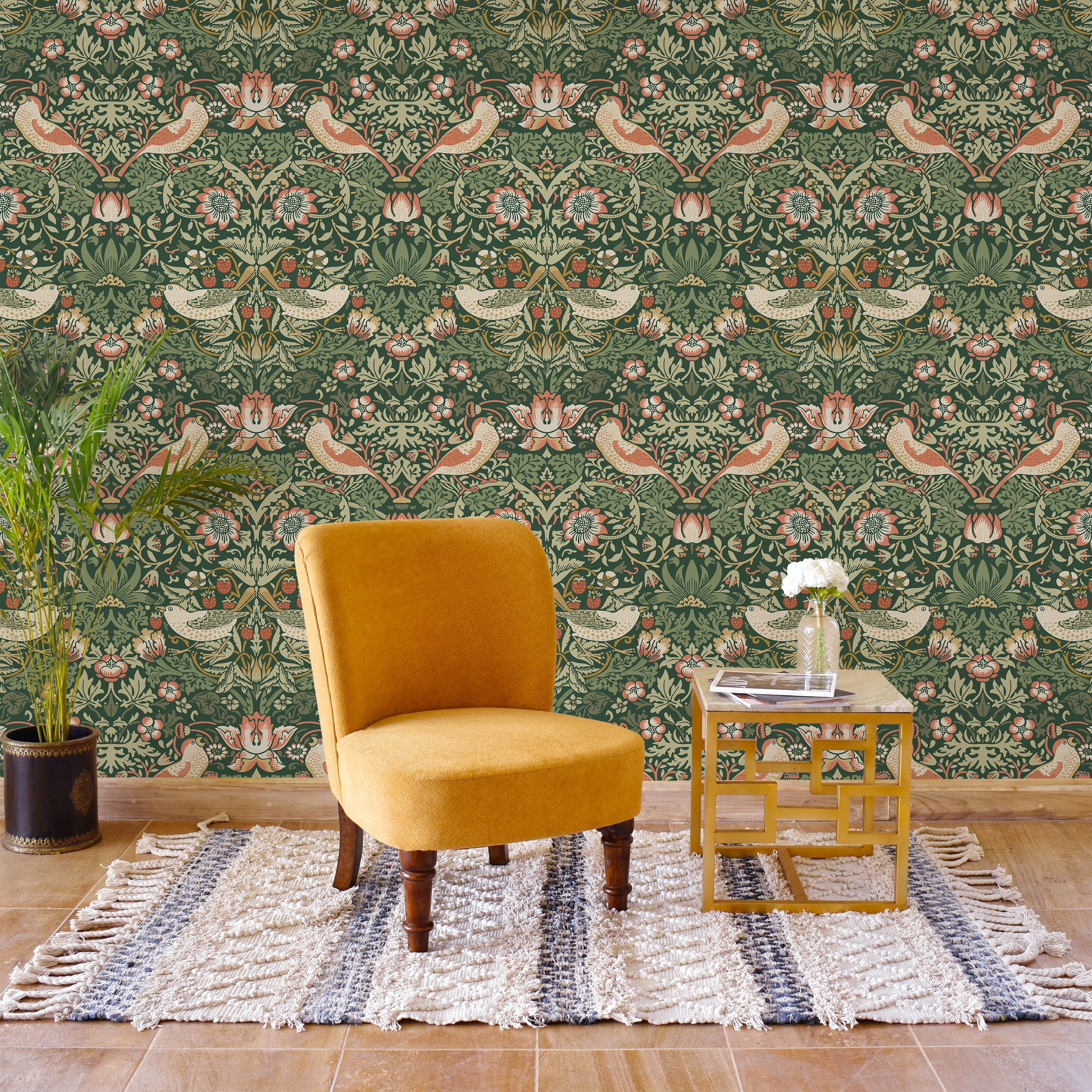 William Morris X Strawberry Thief Wallpaper - Green