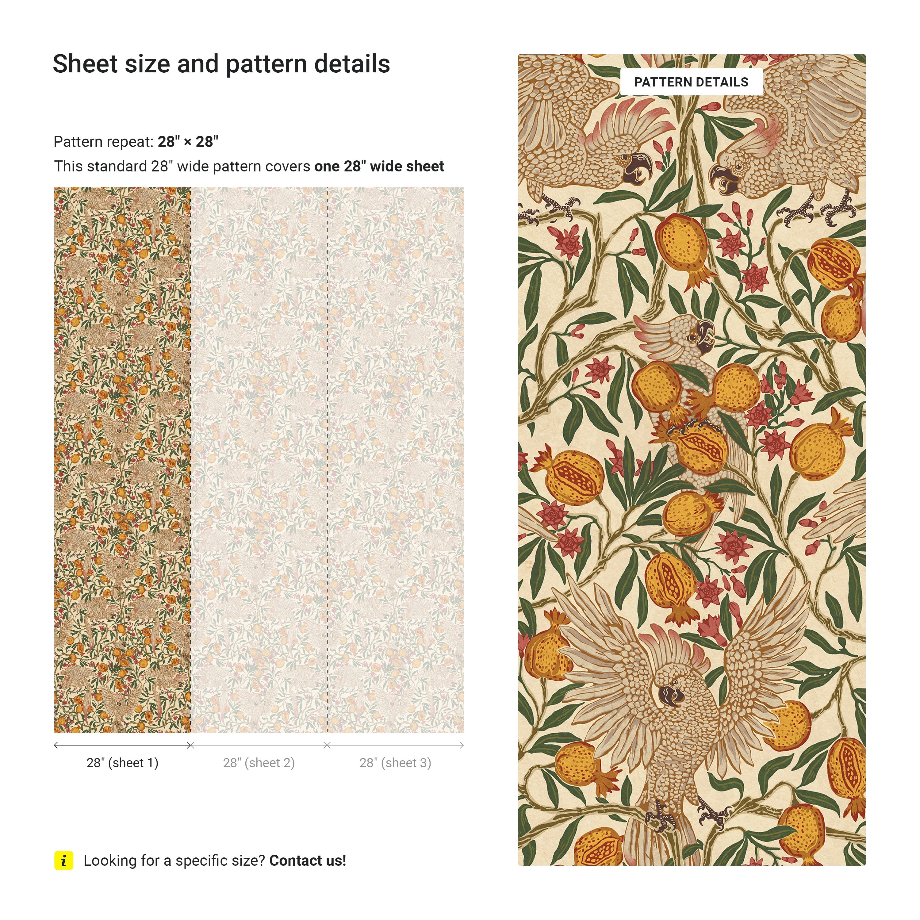 Walter Crane x Cockatoo and Pomegranate Wallpaper - Soft Beige
