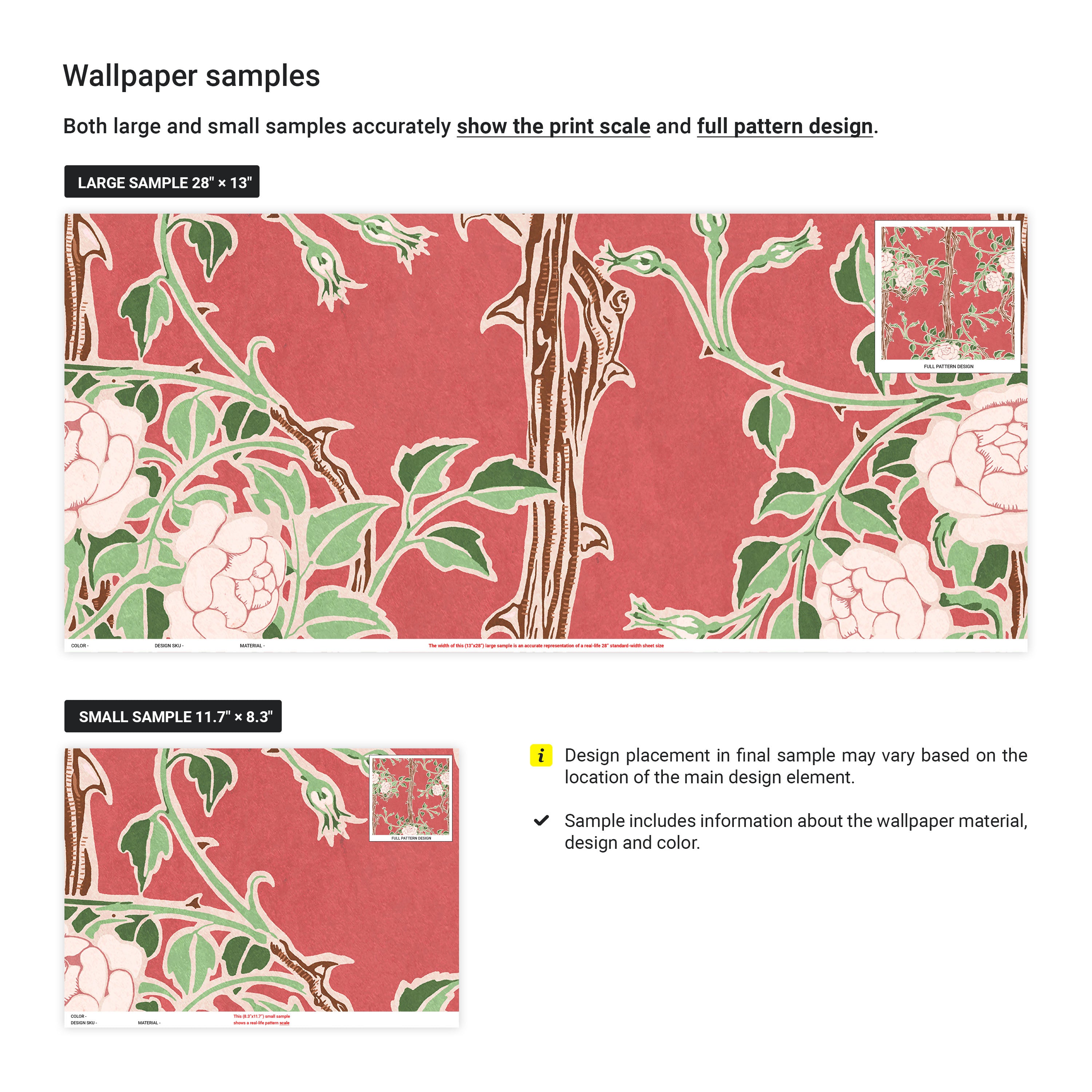 Walter Crane x Rose Bush Wallpaper - Ember Red