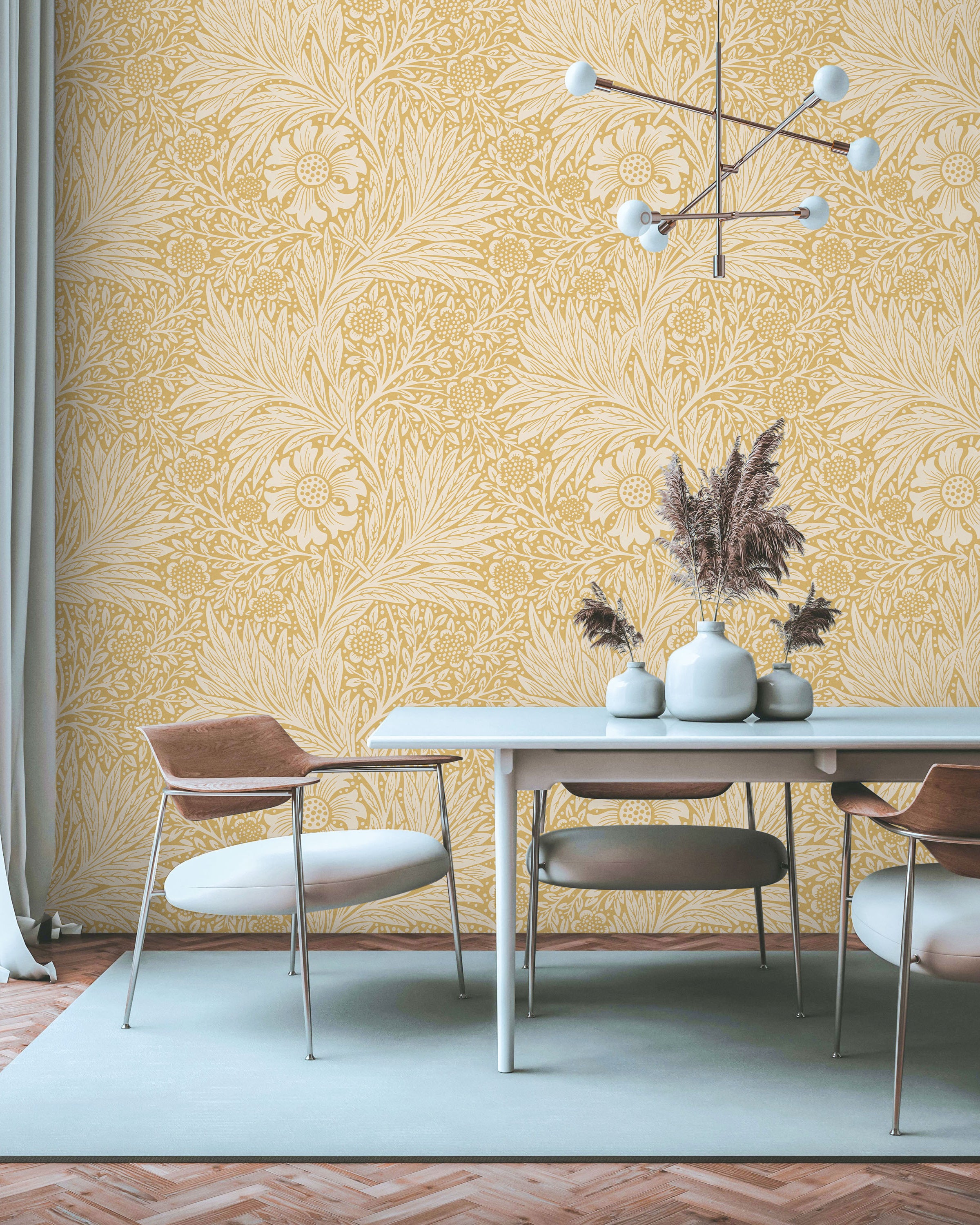 Yellow is the color that captures our attention more than any other color. It radiates happiness and optimism, enlightenment and creativity, sunshine and spring. And if your room doesn’t get enough sunlight, this color will create a sunny and warm atmosphere for you. Enjoy the rainy days with the wide selection of sunny-colored wallpapers.