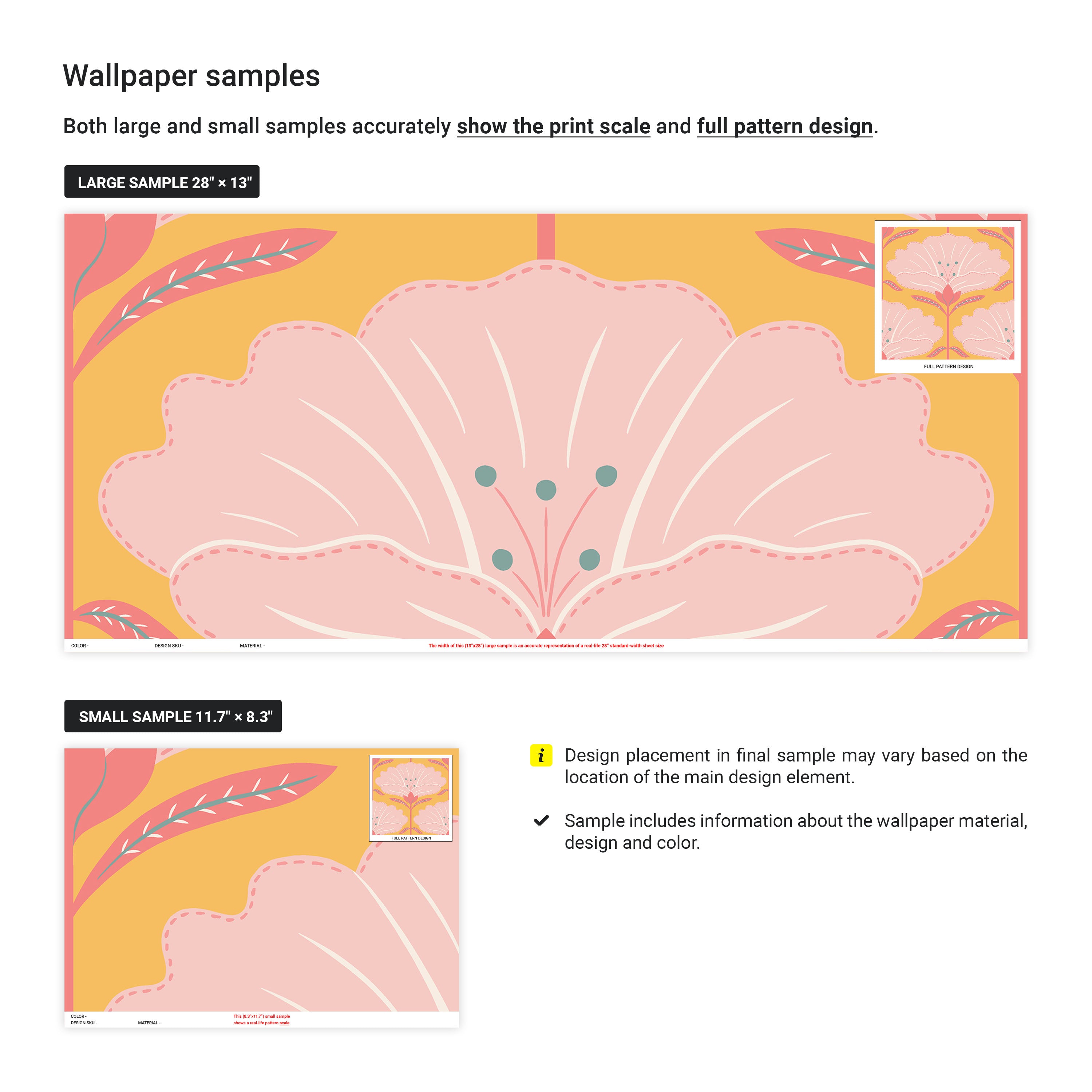 Customize colors of the wallpaper design details or background to match your interior palette. When placing an order, include a note specifying the detail you would like to change.