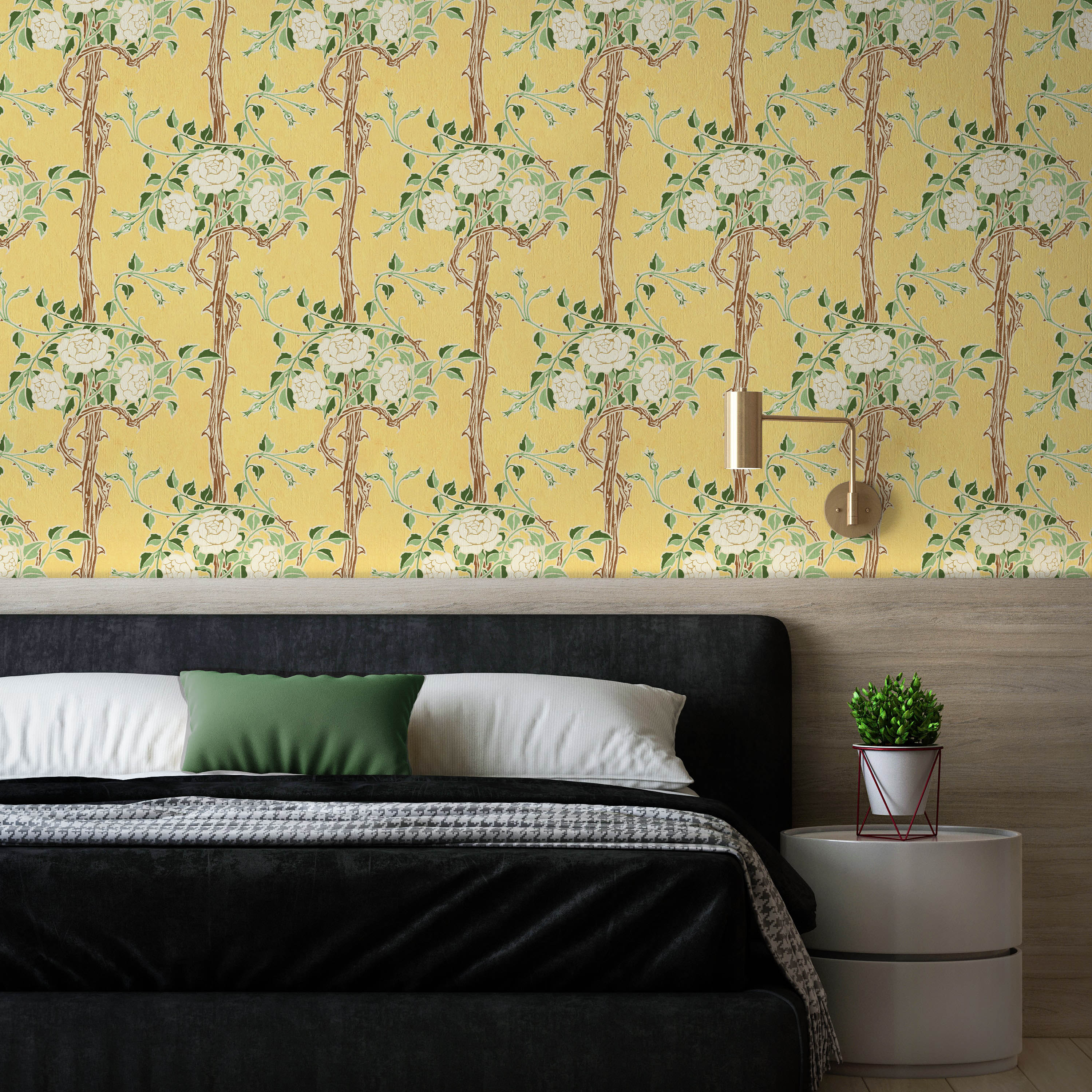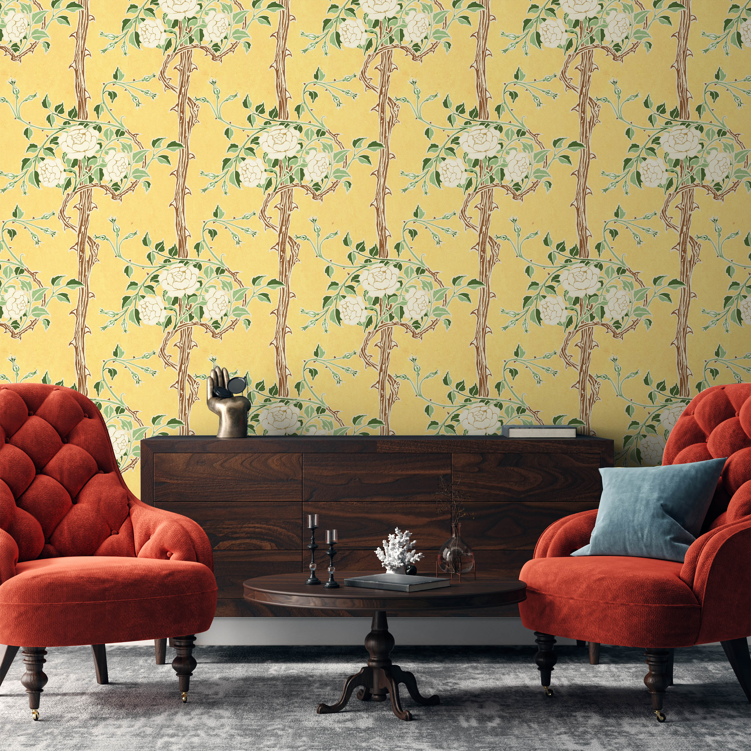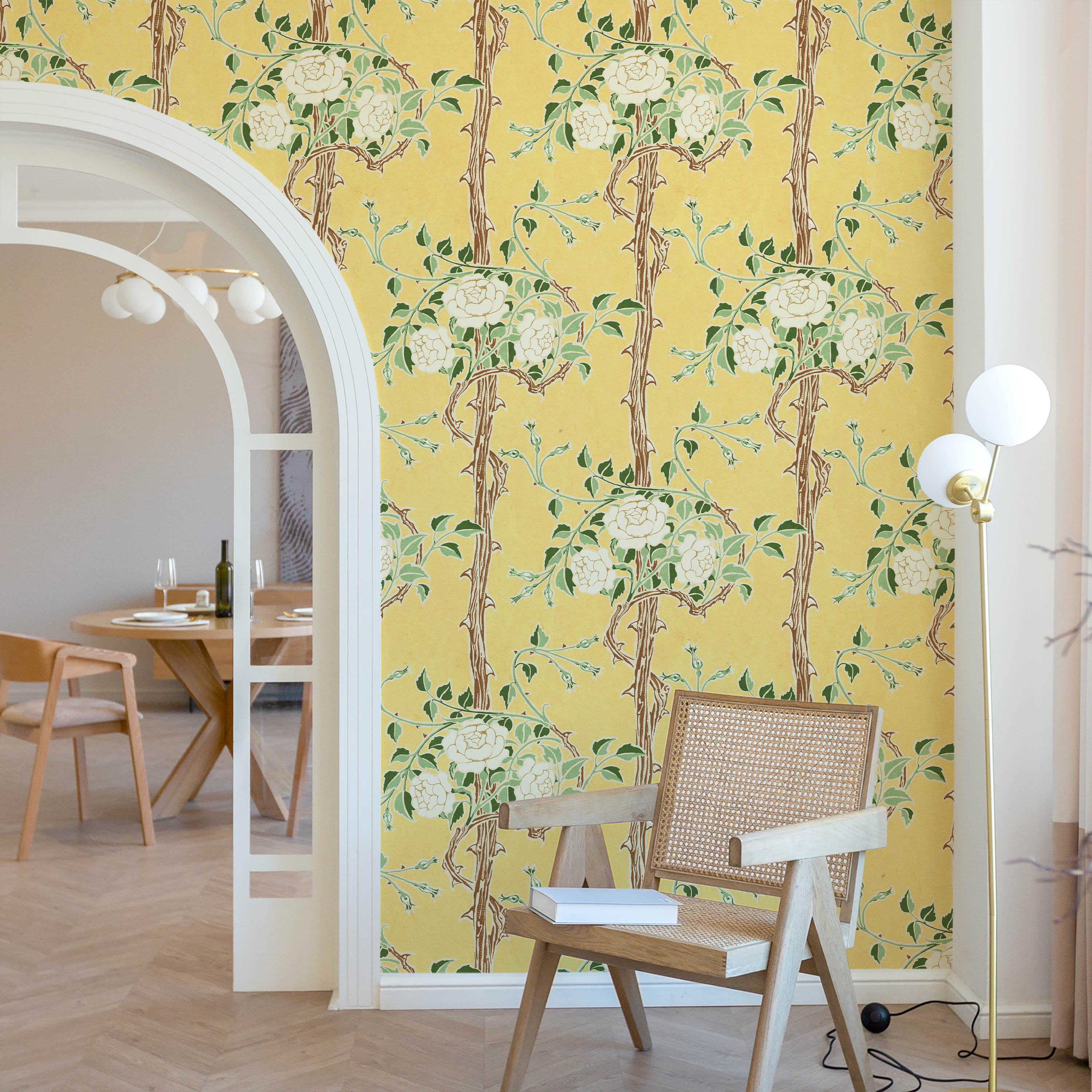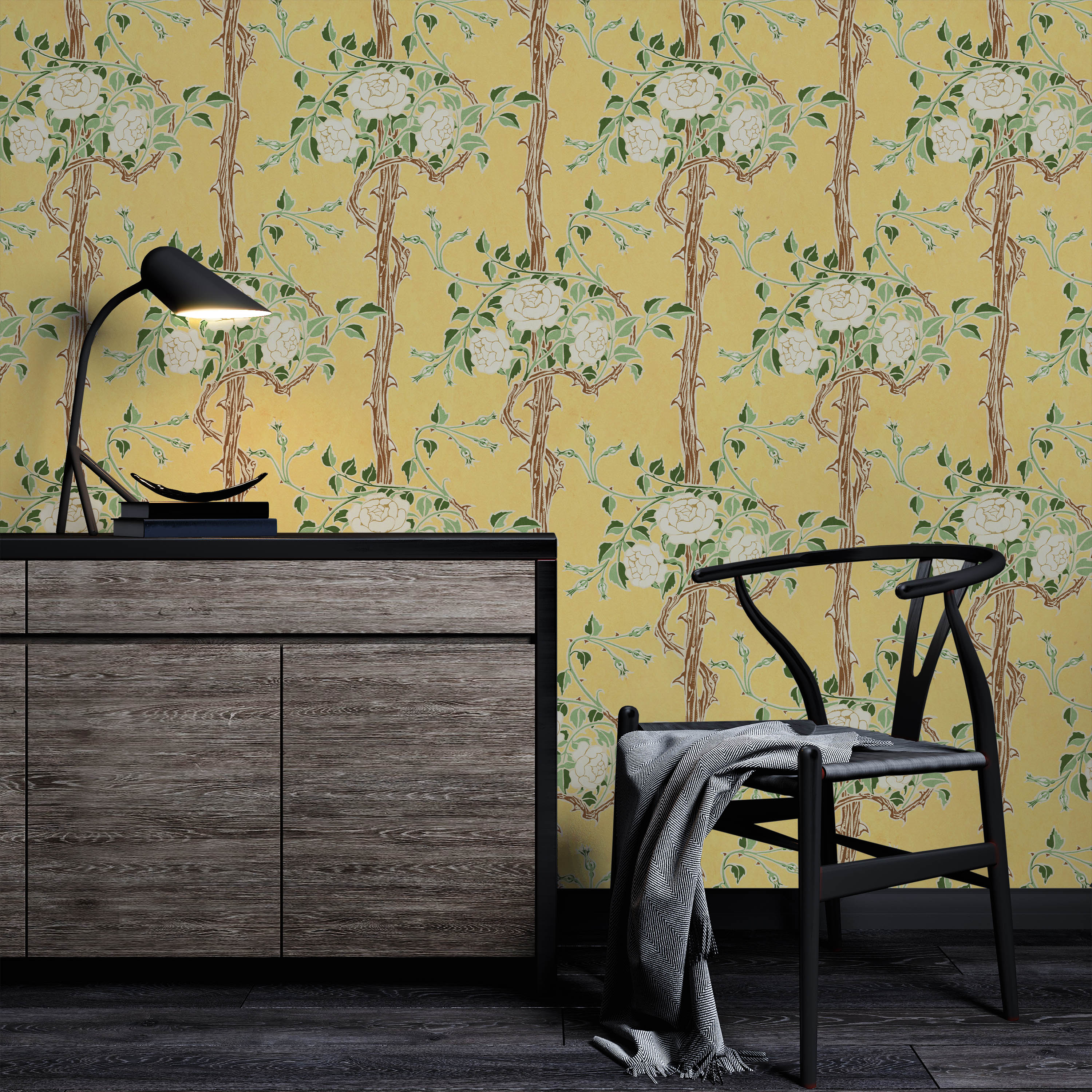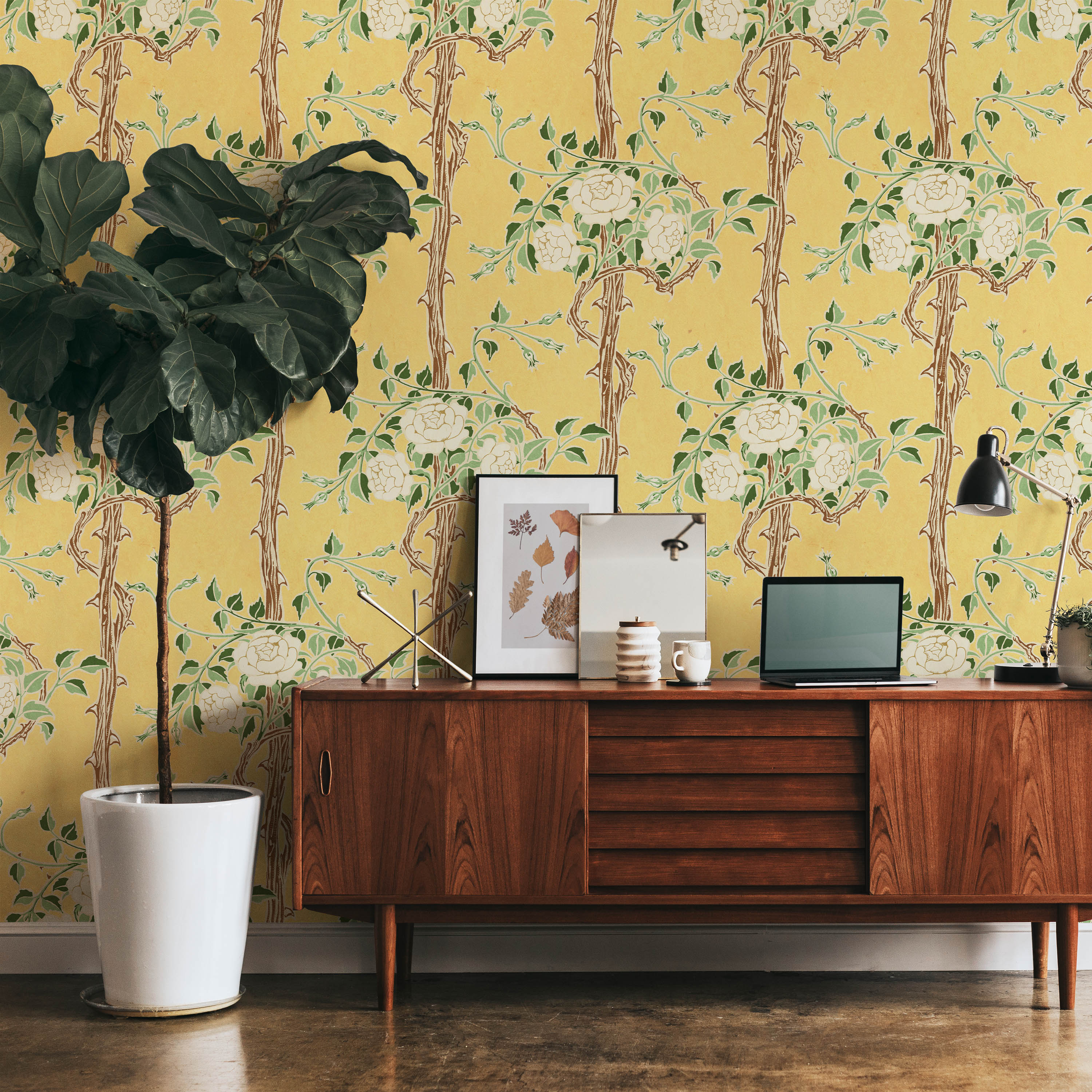 Walter Crane x Rose Bush Wallpaper - Sunrise Yellow