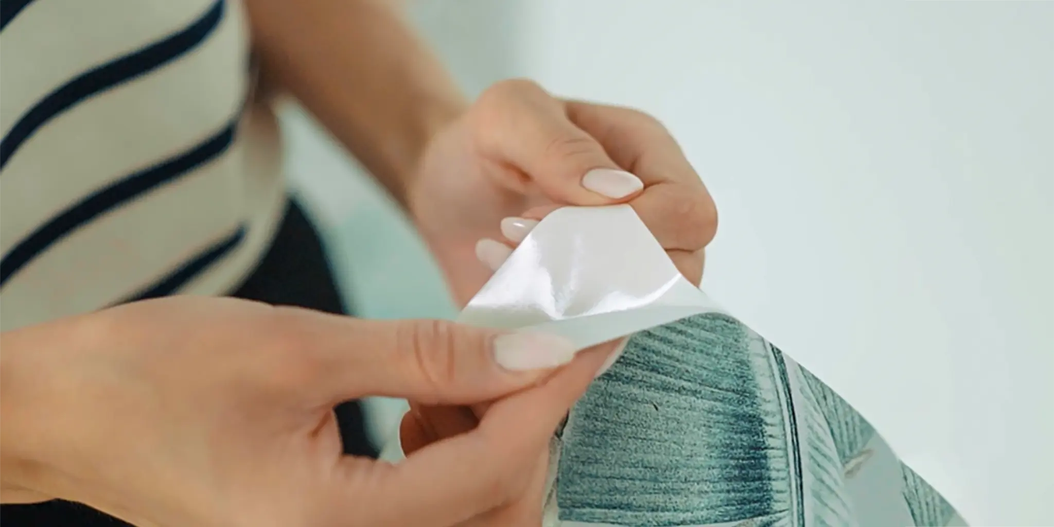 - Gently peel back a few inches of the backing paper to expose the adhesive.