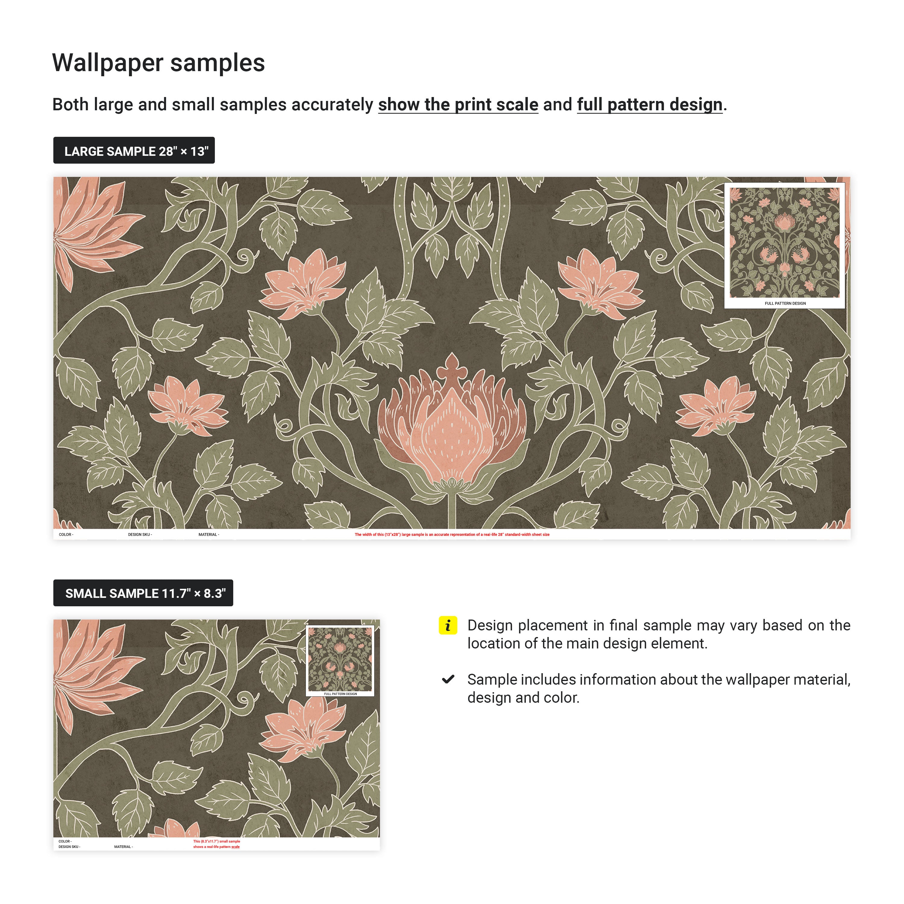 Customize colors of the wallpaper design details or background to match your interior palette. When placing an order, include a note specifying the detail you would like to change.