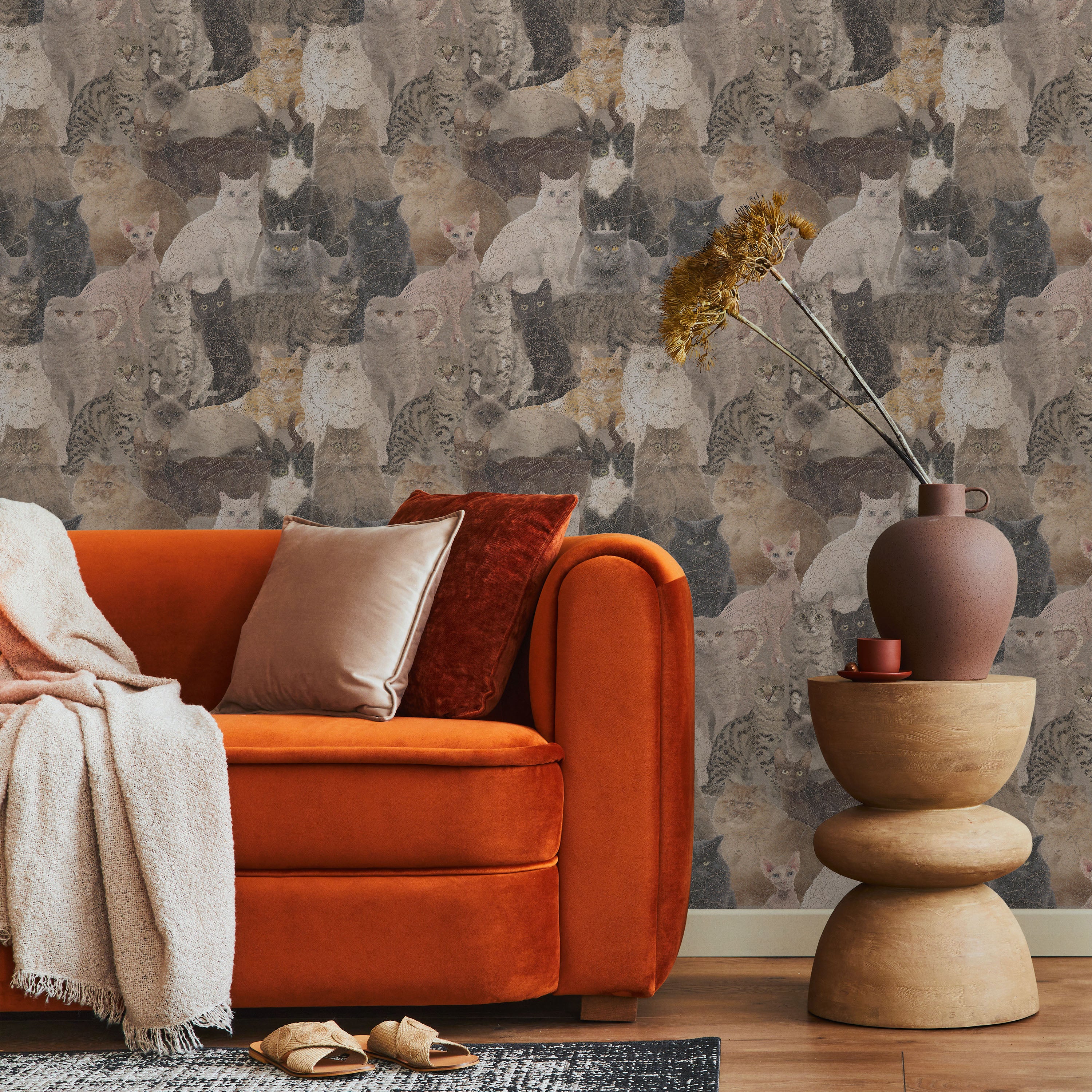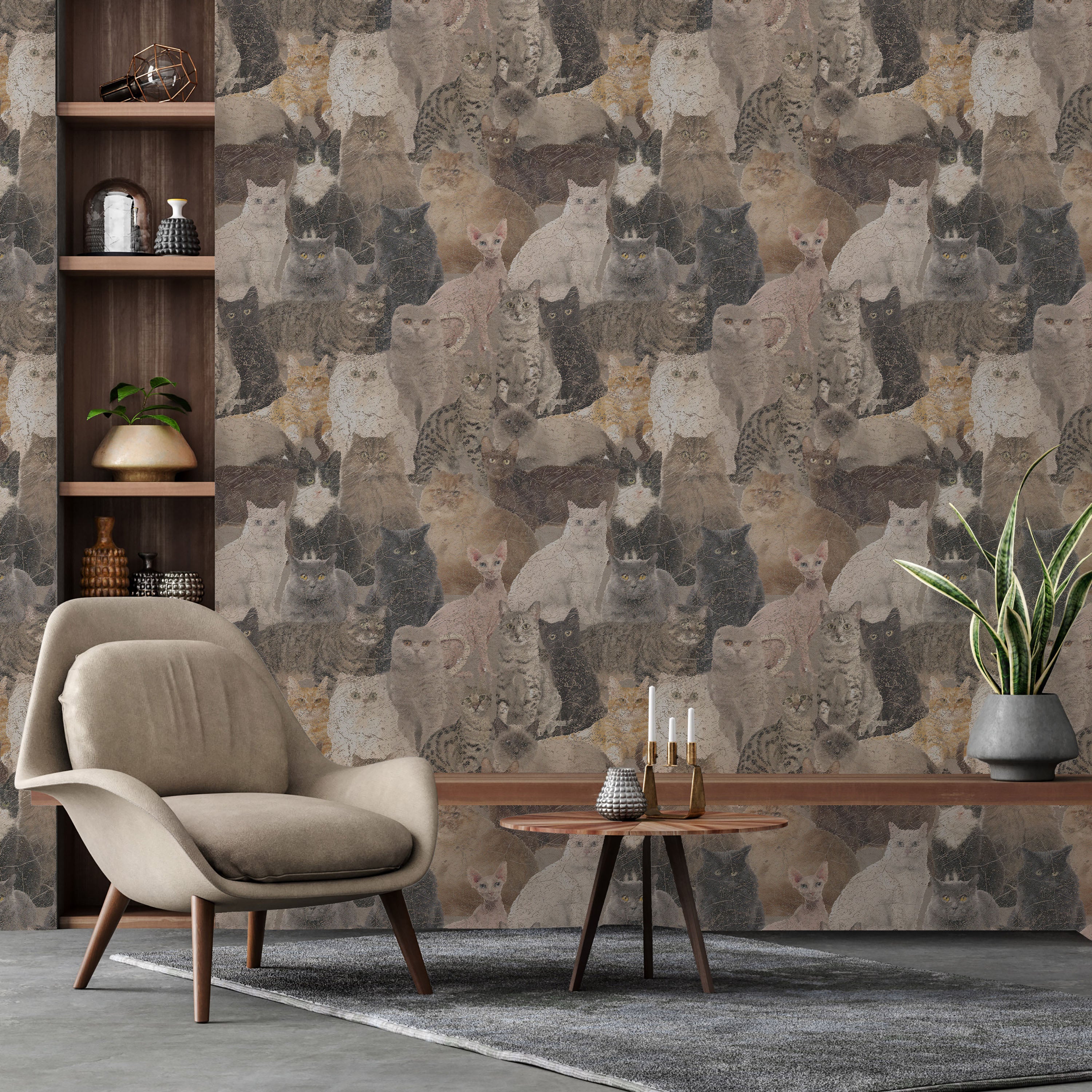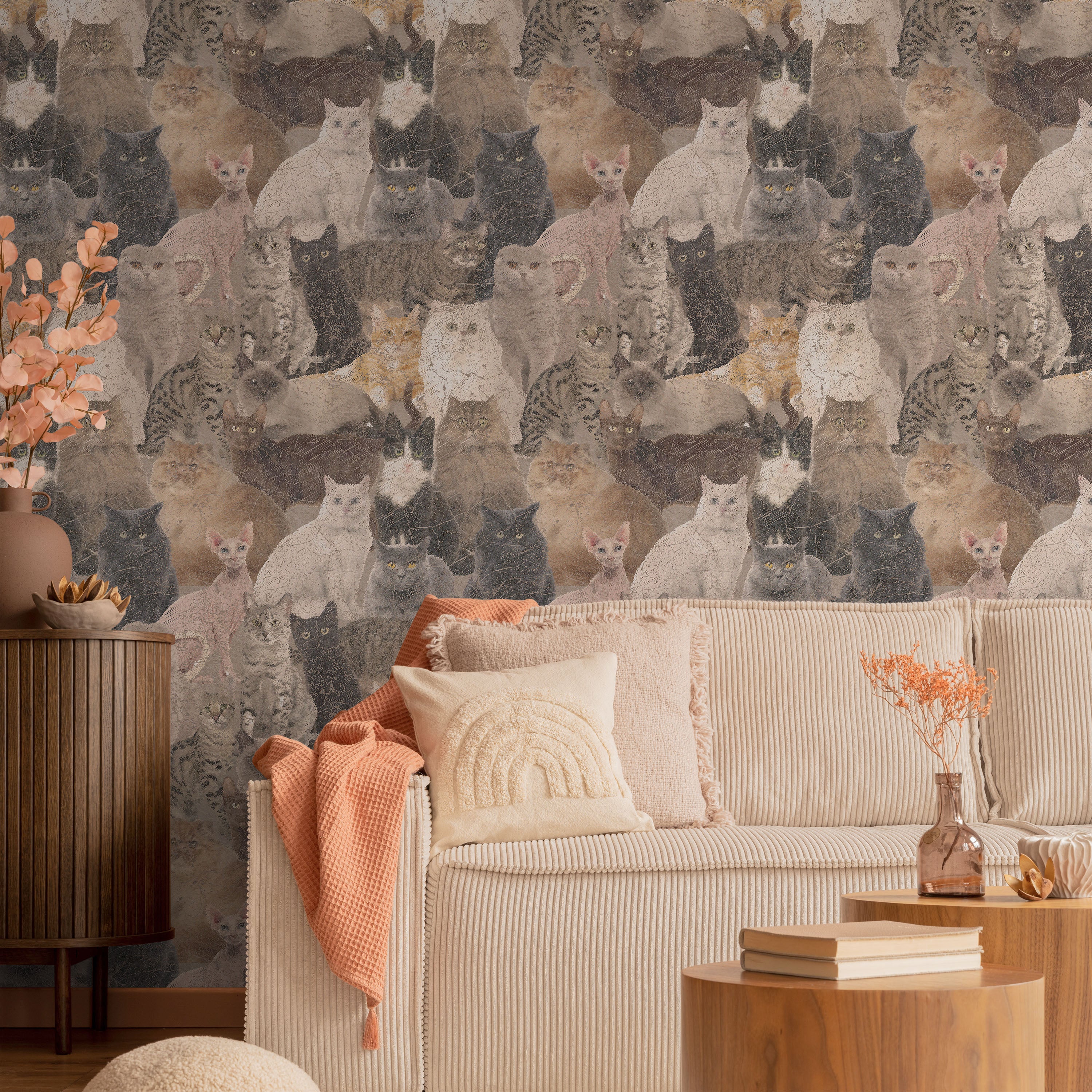 Featuring a curated collection of feline breeds rendered in diverse colorways, this wallpaper celebrates the distinctive characteristics of various cat types. Each illustration captures unique markings and proportions, creating visual interest across your space with sophisticated artistry.
