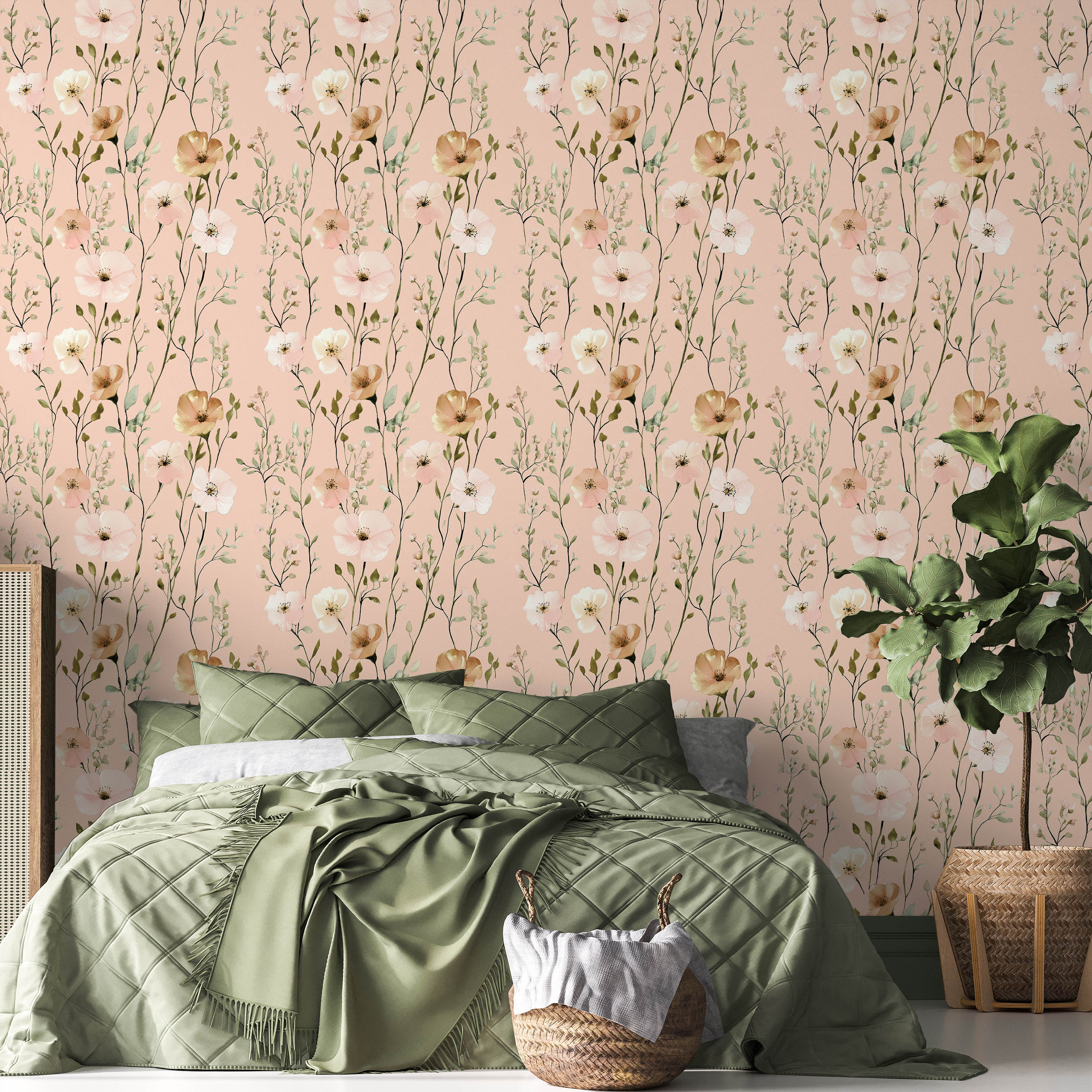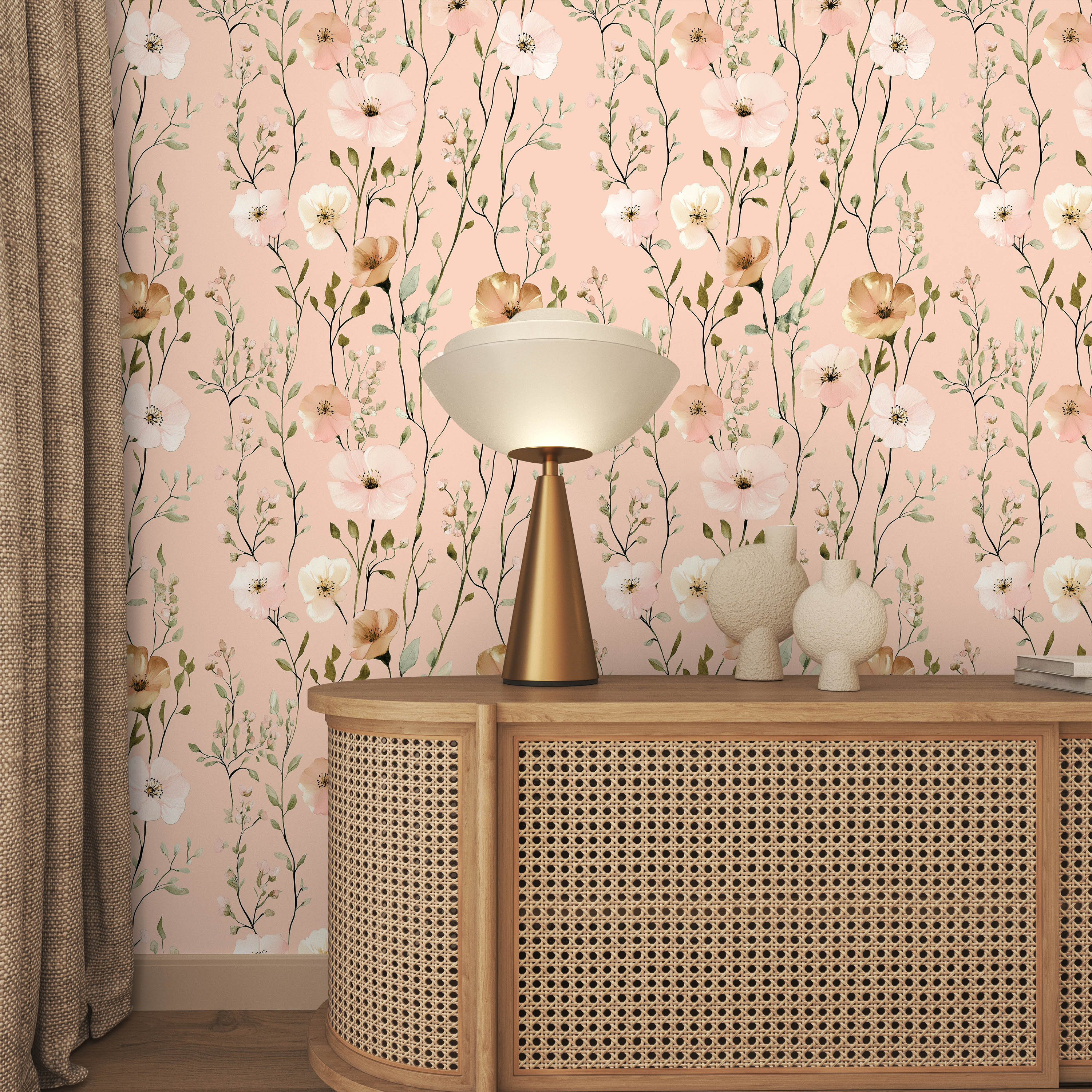 Pastel Meadow Wallpaper - Dusty Beige